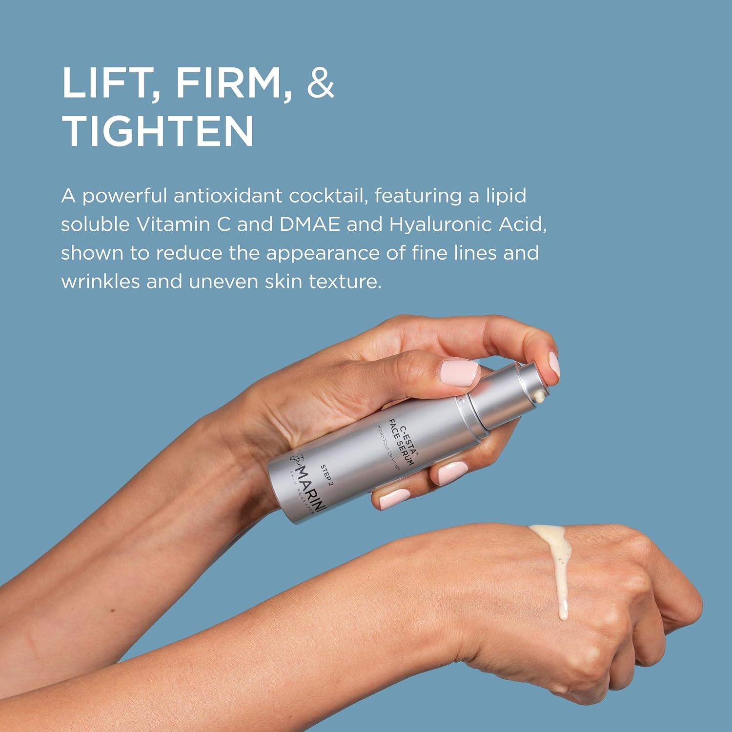 - Face Serum for Skincare: This exceptional vitamin C serum with DMAE lifts, firms, and tightens the appearance of facial contours and is great for all skin types