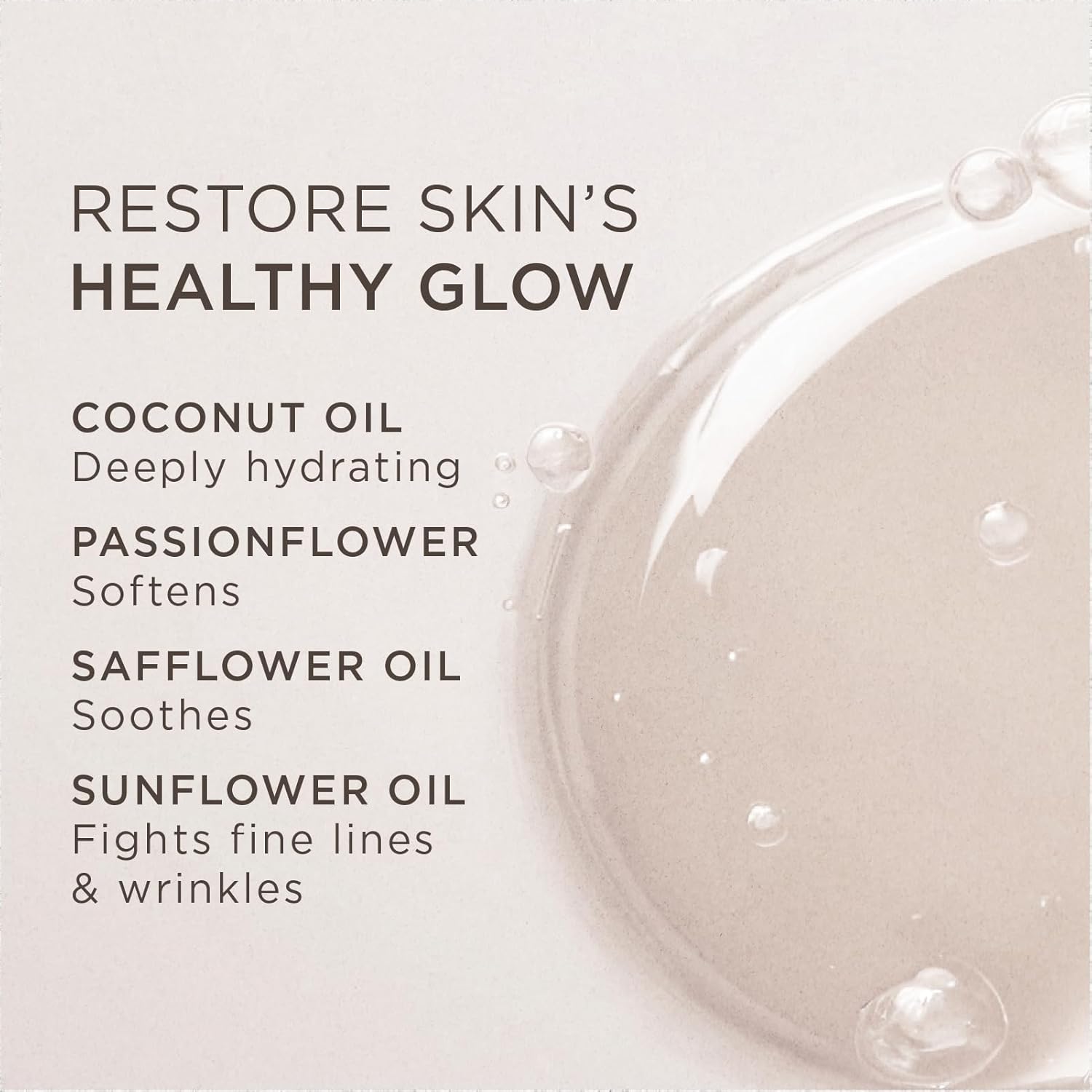 - NATURAL INGREDIENTS. Antioxidant-rich coconut oil and Vitamin E help prevent the signs of aging and promote skin-cell regeneration to minimize the appearance of wrinkles and improve the look of stretch marks. Sunflower and safflower oils offer soothing benefits that improve the texture and softness of the skin.
