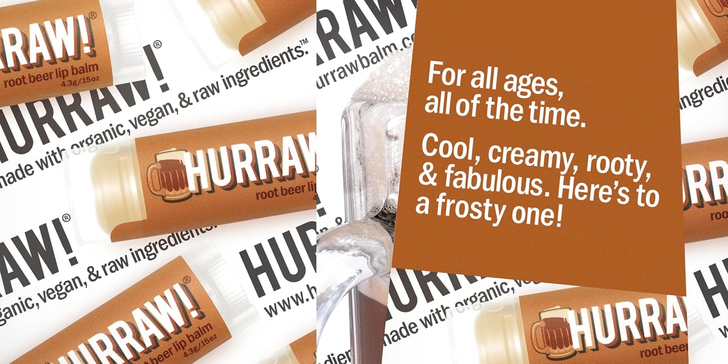 - THREE 4.8g/.17oz Oval Tubes of HURRAW! Lip Balm packaged in a white HURRAW! branded pillow box. VANILLA BEAN (tiny speck, vanilla bean seed lingers, you might even find one!, a delicate, dreamy vanilla scent. ROOT BEER (cool, creamy, rooty and fabulous). CHOCOLATE (unsweetened, raw chocolate is in the house!). Made with certified organic, vegan, and raw ingredients. Hurraw! Lip Balms are certified 100% all natural origin, cruelty and gluten free. Non-GMO. Bee, Shea, Soy and Palm Free.