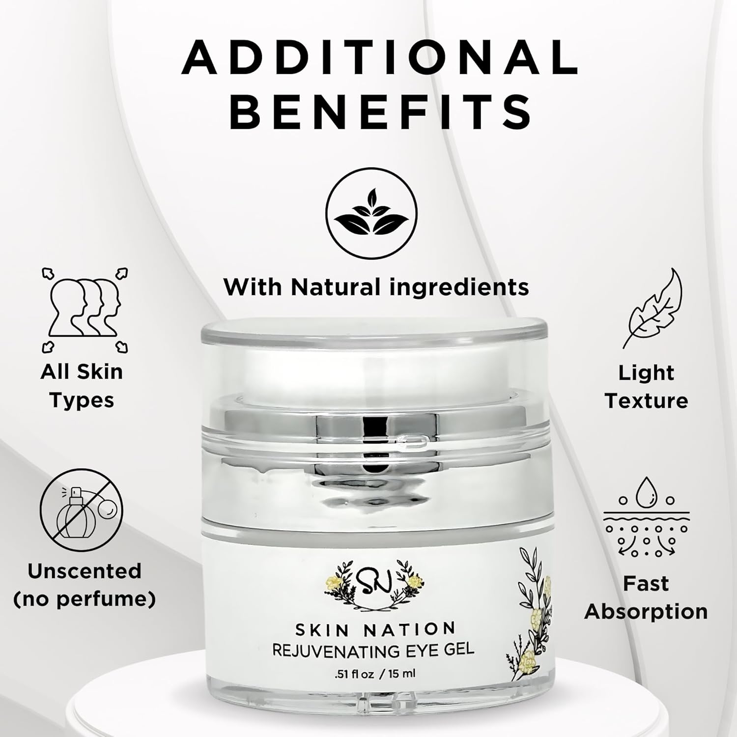 Skin Nation Rejuvenating Eye Gel, Super Hydrating with Peptides, Hyaluronic Acid and Green Tea, Lightweight Plant Based Under Eye Cream for Puffiness, Dark Circles and Smooth Skin, 0.51 oz