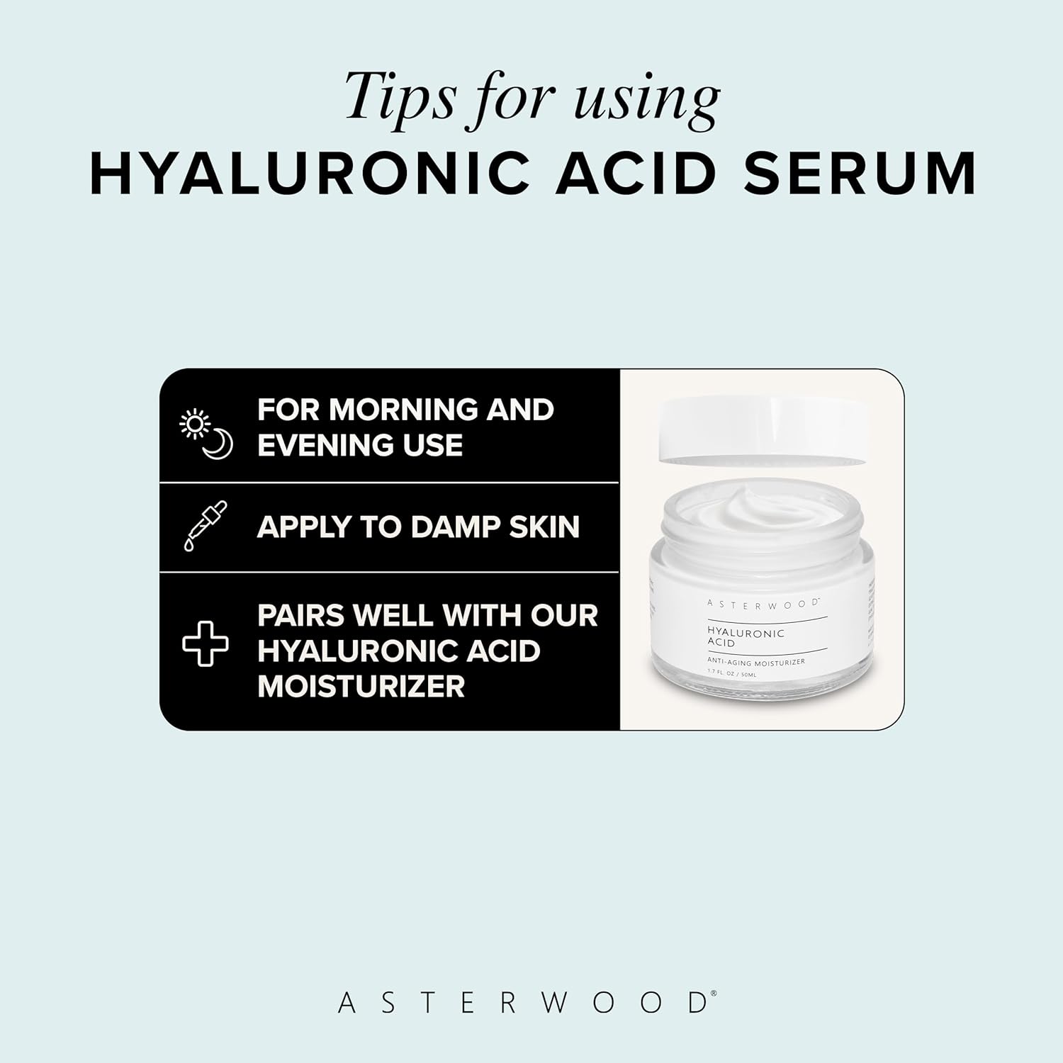 Asterwood Hyaluronic Acid Serum for Face - Plumping, Anti-Aging, Hydrating - Fragrance-Free - 4 Fl Oz