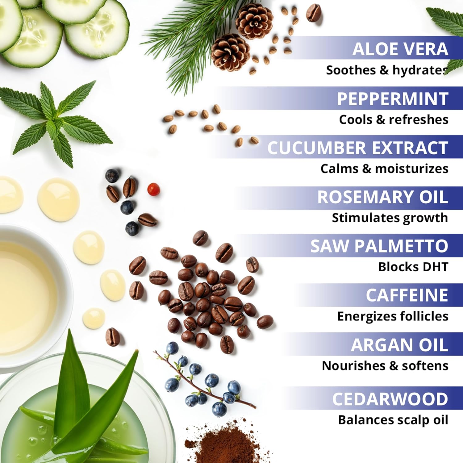 - Advanced Botanical Complex We combined Saw Palmetto, Biotin, Niacin, Caffeine, Arginine, Apple, Argan & Grape Stem Cells for strong, resilient hair. It’s the perfect hair thickening shampoo or shampoo for hair growth without harsh chemicals or parabens.
