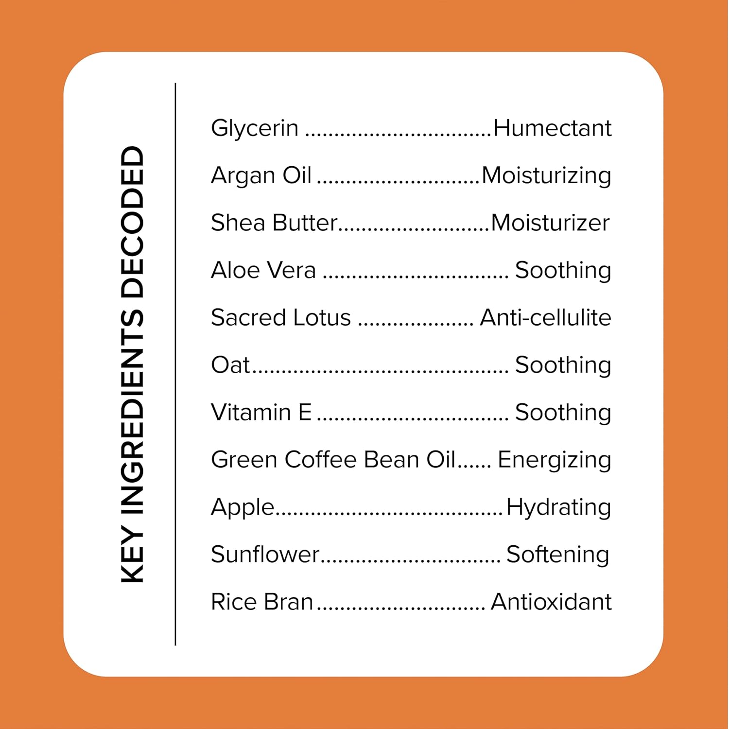 - DEEP HYDRATION FOR HEALTHIER SKIN – Infused with Lotus Extract, Aloe Vera, & Coffee Bean Oil for instant hydration to the skin while increasing skin's elasticity + complexion. Lotus Extract contains Vitamin C, Vitamin B complex, & antioxidants that help nourish and brighten your complexion. Coffee Bean extracts cleanse and purify your skin by reducing redness and puffiness while also tightening and exfoliating the skin.