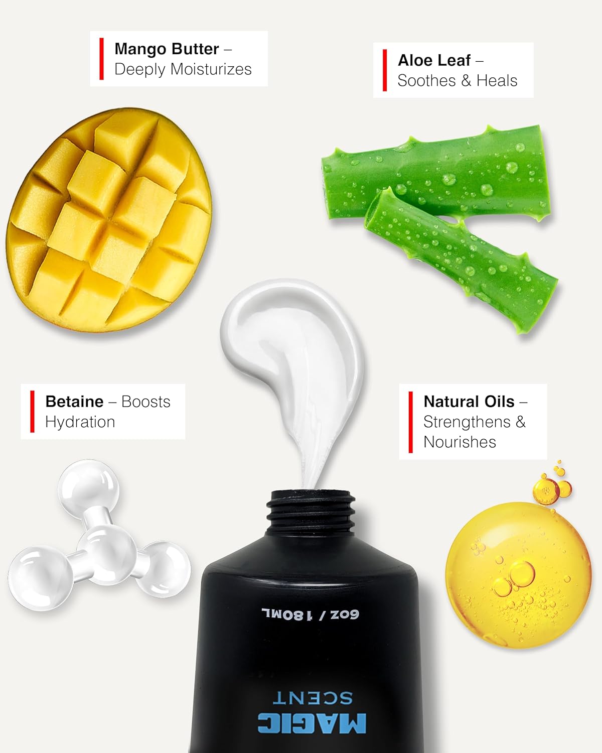 - Powerful, Natural Active Ingredients: Say goodbye to the dreaded beard itch and embarrassing beardruff, and hello to the smoothest, silkiest beard you've ever had. Natural moisturizers and oils including Mango Butter, Avocado Oil, Aloe Leaf, Jojoba Esters, and Argan Oil hydrate deep within your pores, giving your skin and beard the essential care every bearded man deserves