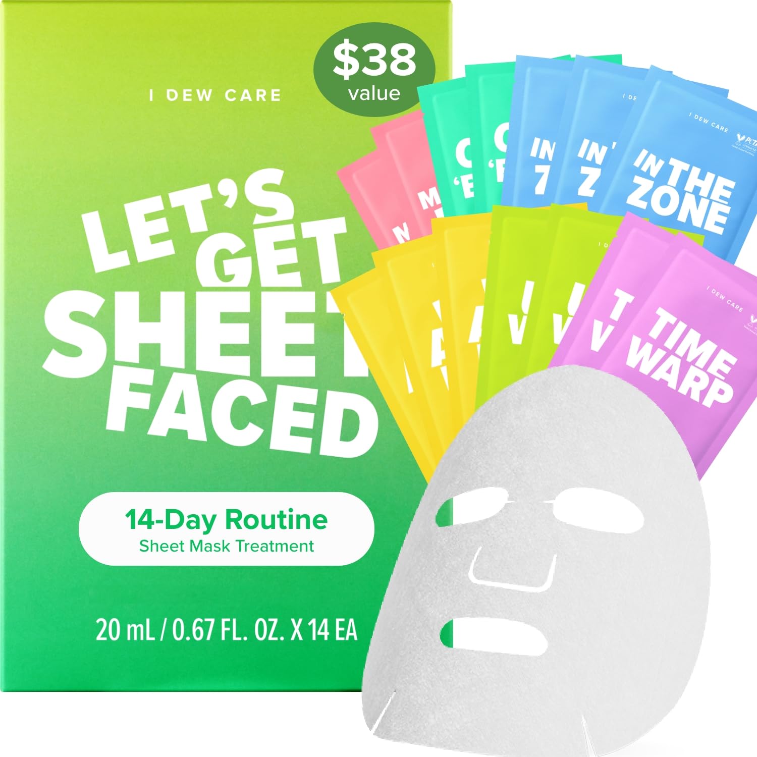 - TOTALLY SHEET FACED: Need to get sheet faced every day of the week? Yeah, us too. Get 14 sheet face masks in 1 mega value set — the ultimate face mask set for a 2-week skin makeover! Contains 14 mask sheets (6 different variants) in one box.