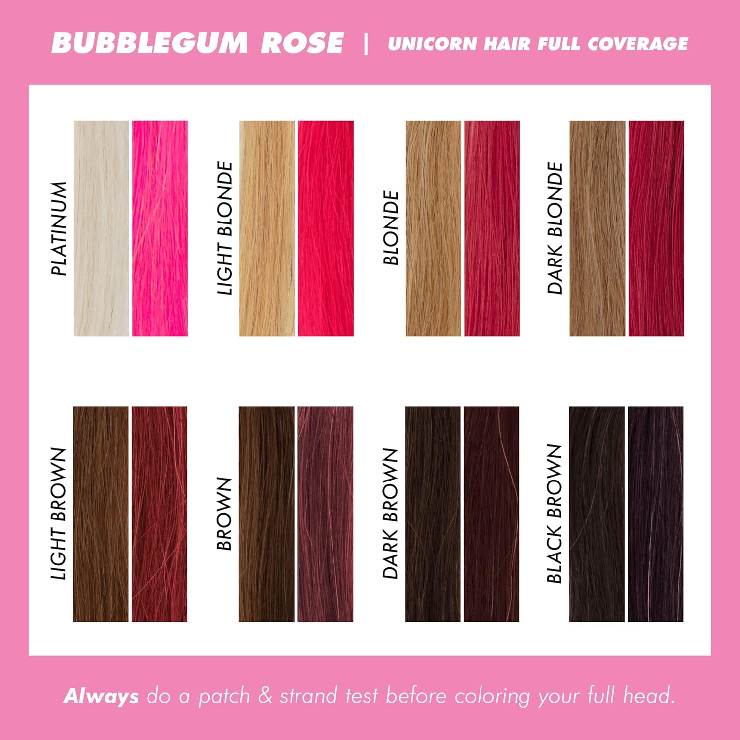 - Before You Use It: Unicorn Hair deposits super-saturated, vibrant color to pre-lightened platinum to medium blonde hair and adds a tint of color to dark blonde and light brown hair. The life cycle of the color depends on the shade and condition of your hair and how often you wash it. Always do a patch and strand test before coloring your full head because results may vary.