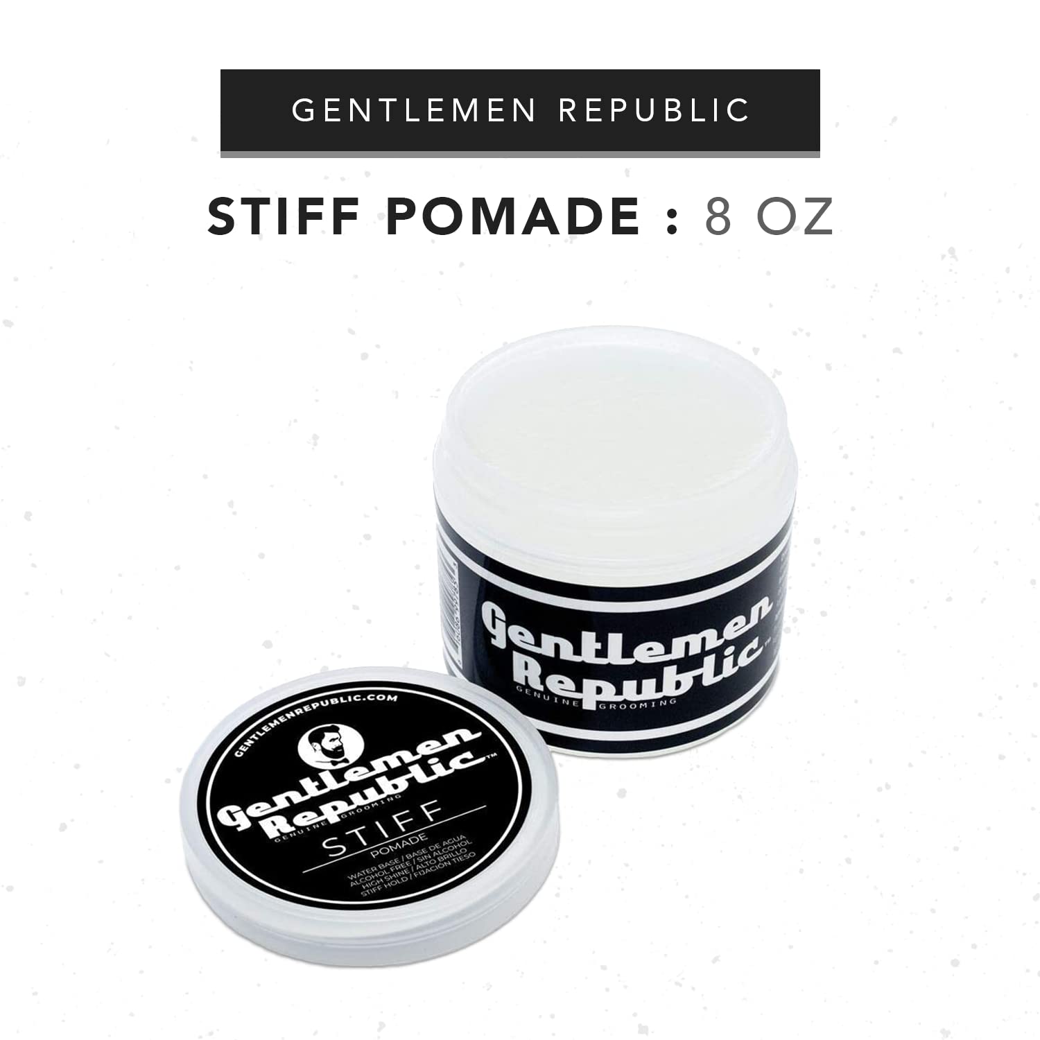Gentlemen Republic 8oz Stiff Hair Pomade - Lightweight All-Day Hold with High Shine Finish, Alcohol-Free and Paraben-Free Formula, Suitable for Thick Hair