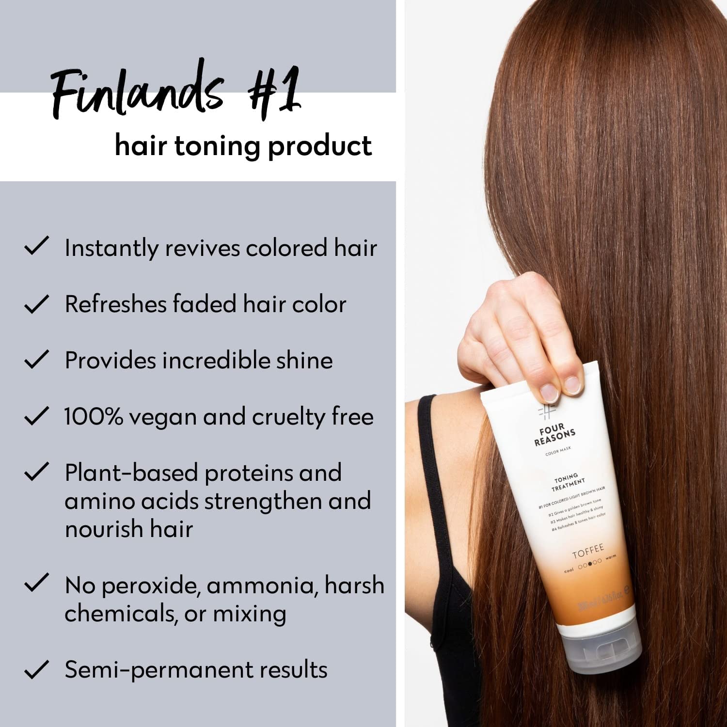 FOUR REASONS Toffee Toning Treatment - Color Depositing Conditioner for Color-Treated Hair - Semi Permanent Hair Toner, Vegan and Cruelty-Free (27 Shades), 6.76 fl oz