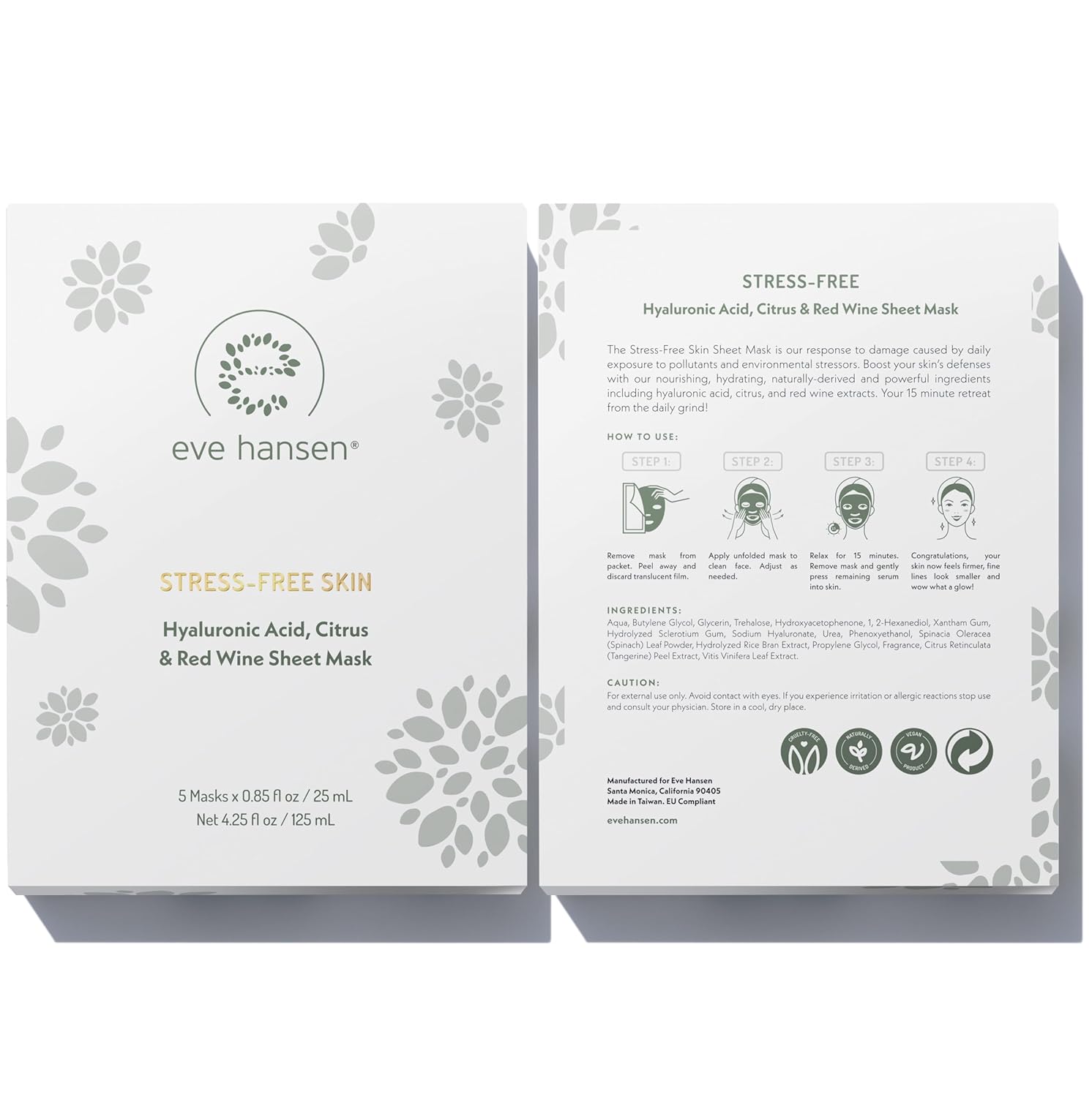 Eve Hansen Collagen Face Mask Sheets Set of 5 – Hydrating & Nourishing Care for All Skin Types – With Hyaluronic Acid, Tangerine Peel, Blueberry Extract & Spinach Leaf