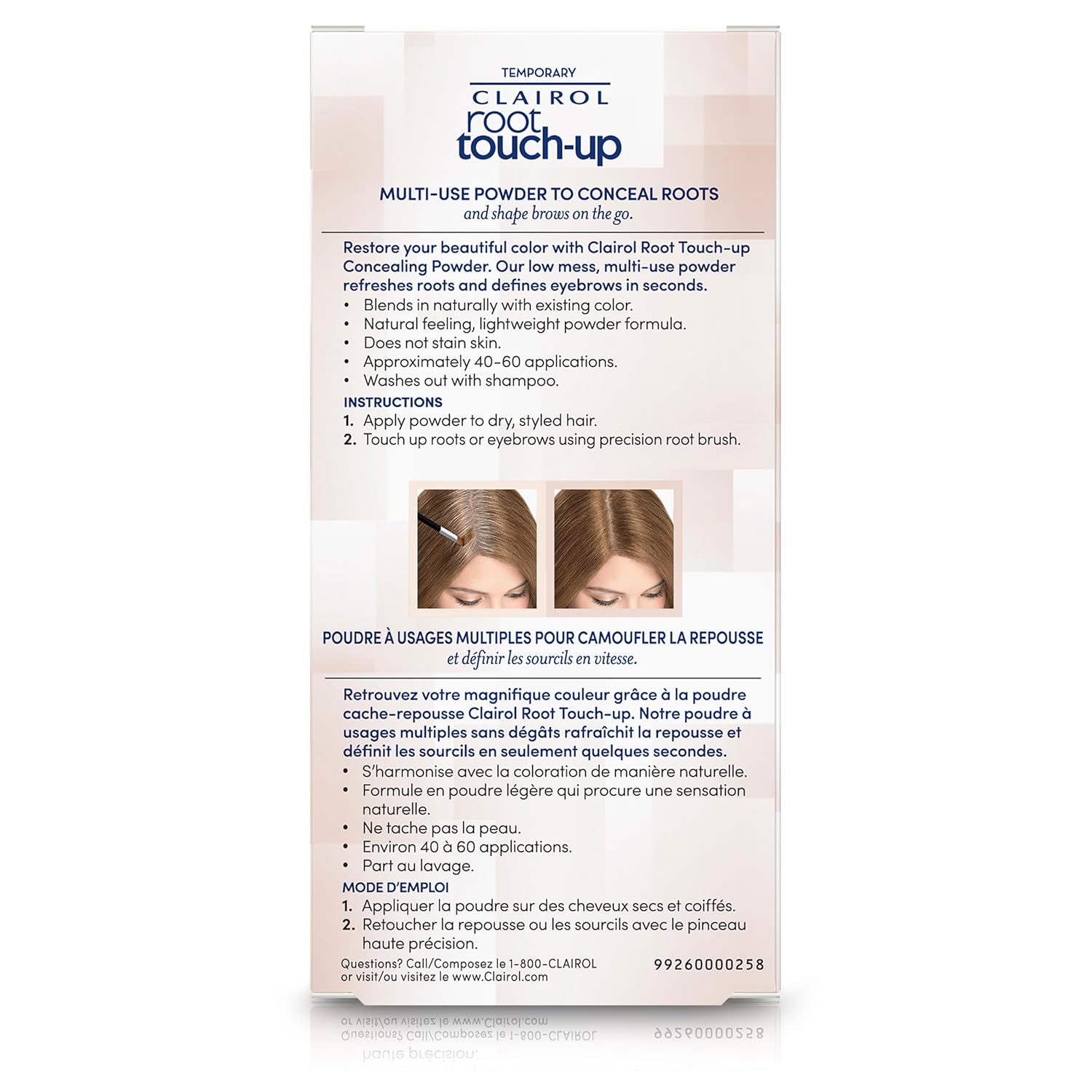 - Product Benefits : Multi-Use Temporary Root Touch-Up Powder instantly covers roots and define brows in seconds!