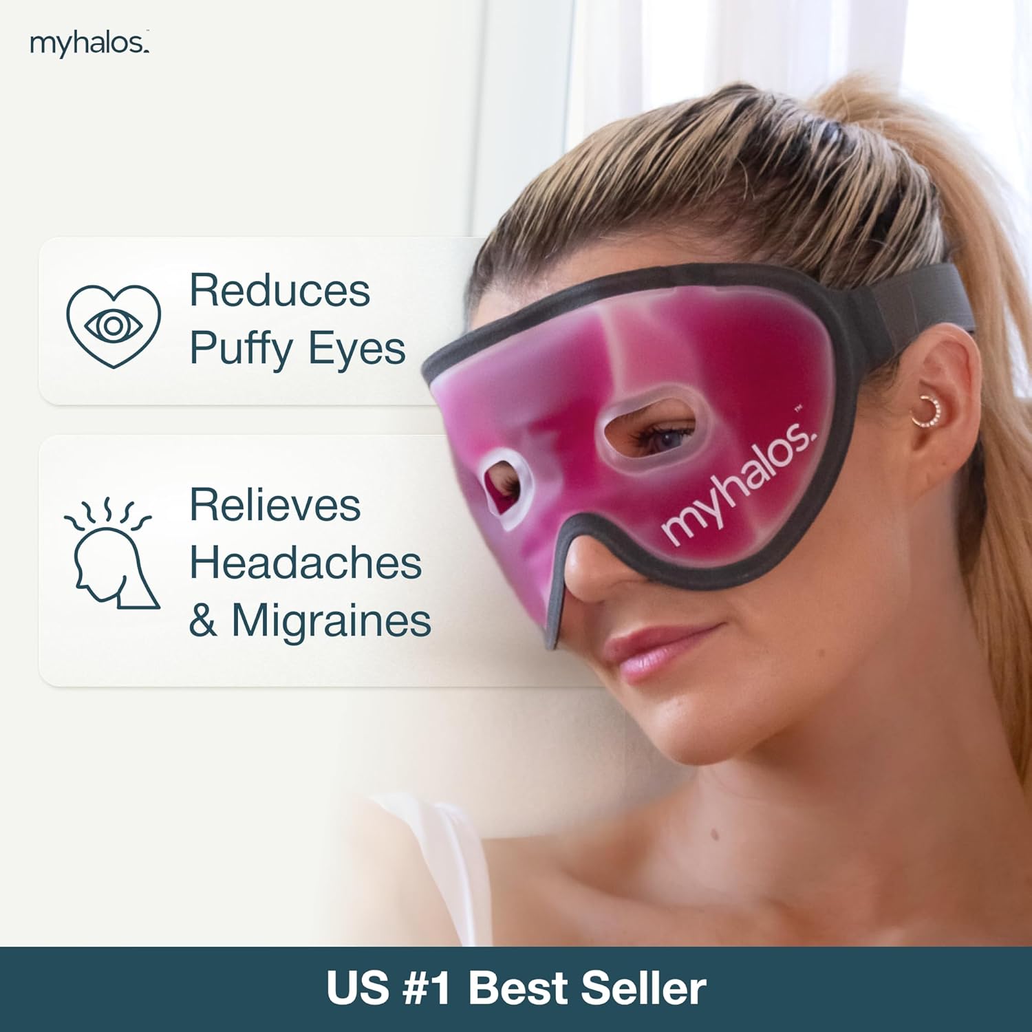 HM Cooling Eye Mask - Reusable Gel Cold Pack Soothes Puffy Eyes, Dark Circles & Hangovers - Relieve Headaches & Sinus Pain With Cold Therapy