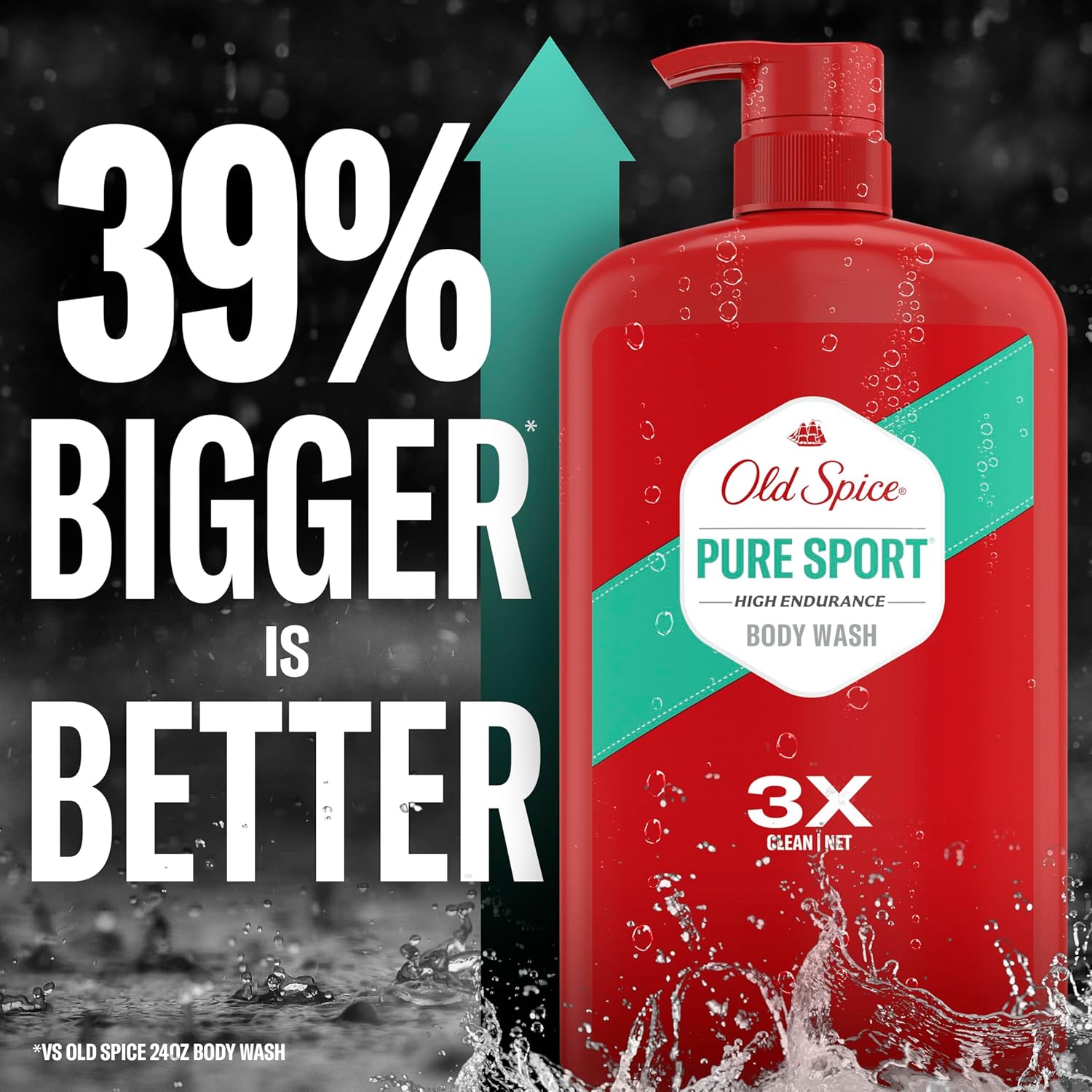 Old Spice Refreshing Body Wash for Men, High Endurance, 3X Defense, 24/7 Shower Fresh with Long Lasting Scent, Pure Sport Scent, 33.4 oz (Pack of 4)