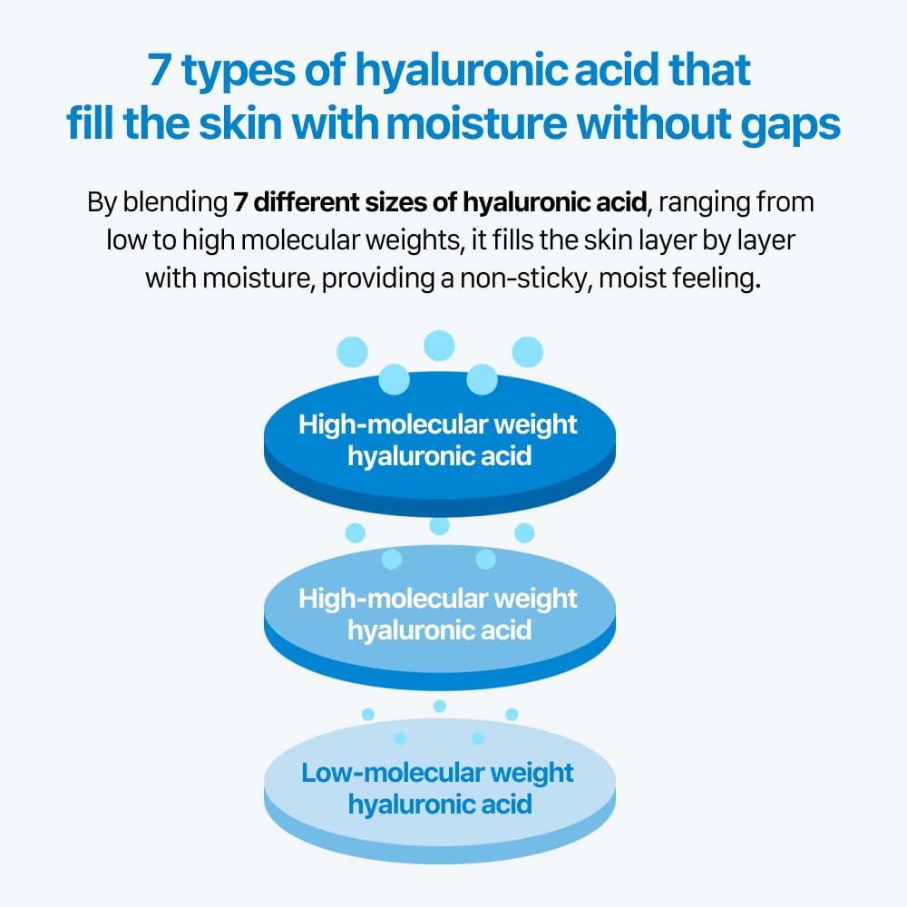 - MULTI-DEPTH HYDRATION FACE MOISTURIZER: High-molecule Hyaluronic Acid builds a moisture barrier. Medium molecule Hyaluronic Acid improves skin elasticity and moisture density, reinforcing moisture storage function. Low molecule Hyaluronic Acid provides moisture inside the skin