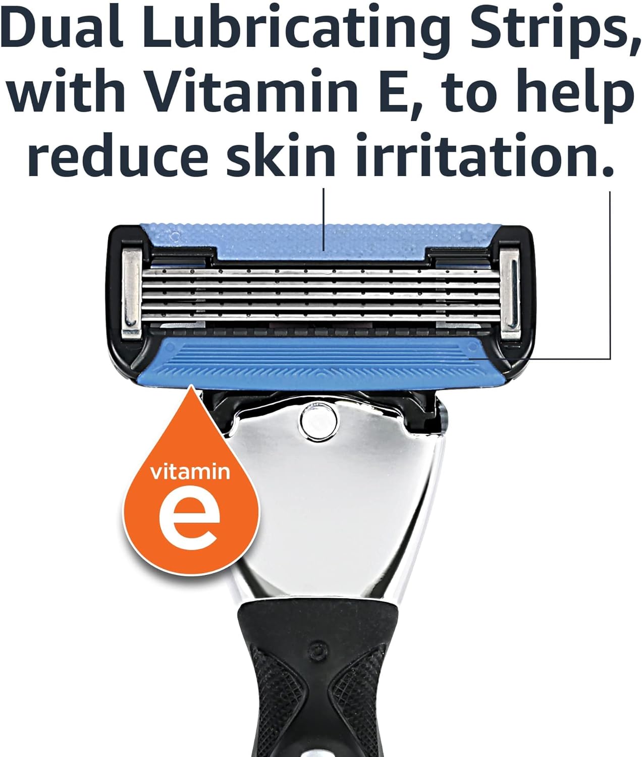 Amazon Basics 5-Blade Razor Refills for Men with Dual Lubrication, Precision Beard Trimmer, Comfortable Shave, 12-Pack (Fits Amazon Basics Razor Handles only)