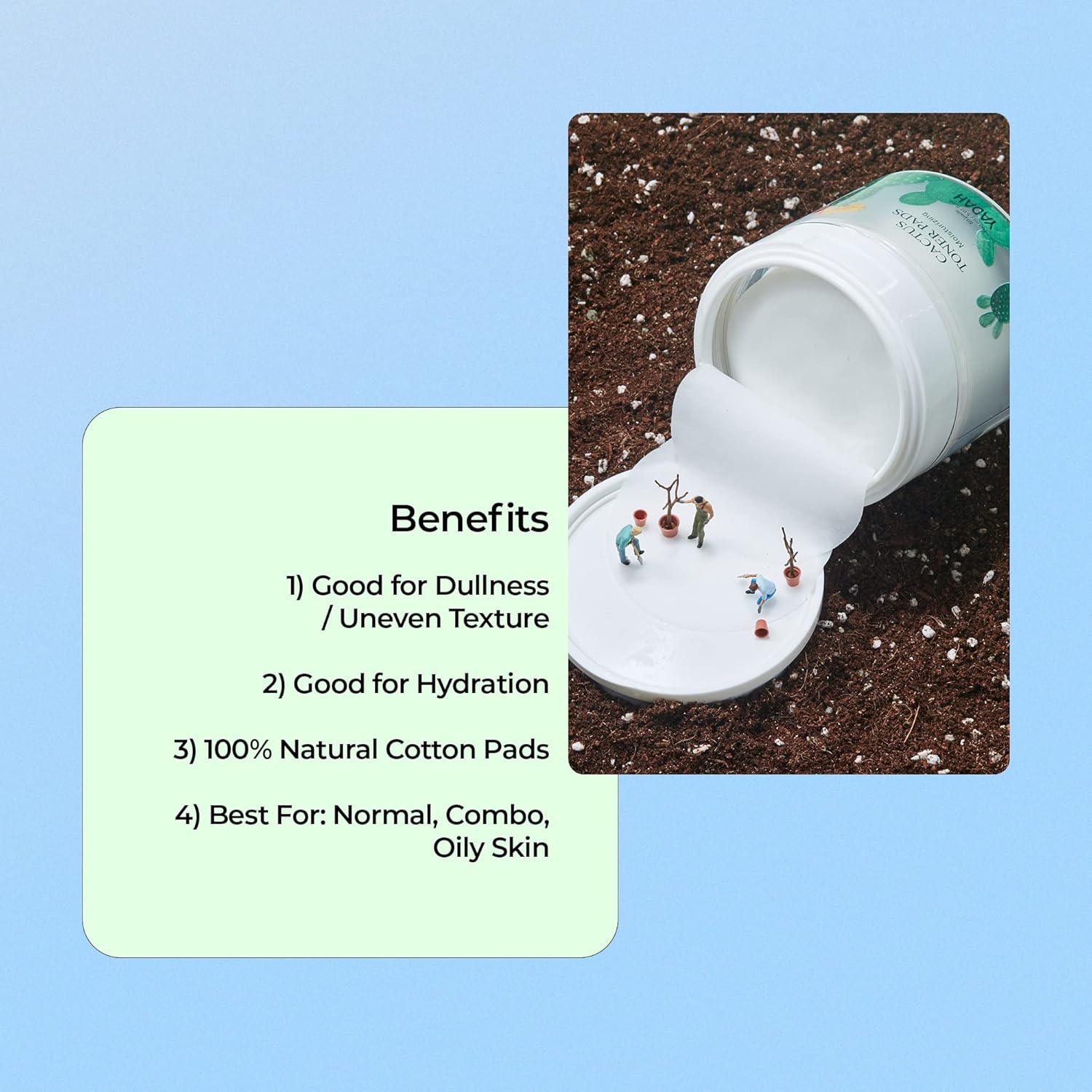 - HYDRATING & EXFOLIATING: Instead of using Purified Water we went a step further and used Cactus Extract as our ingredient. This allowed us to contain over 87% of Cactus Extract in our Cactus Toner Pads. With special exfoliation/healing ingredients such as Witch Hazel Extract and Cica that effectively wipe off waste to start your skincare routine.