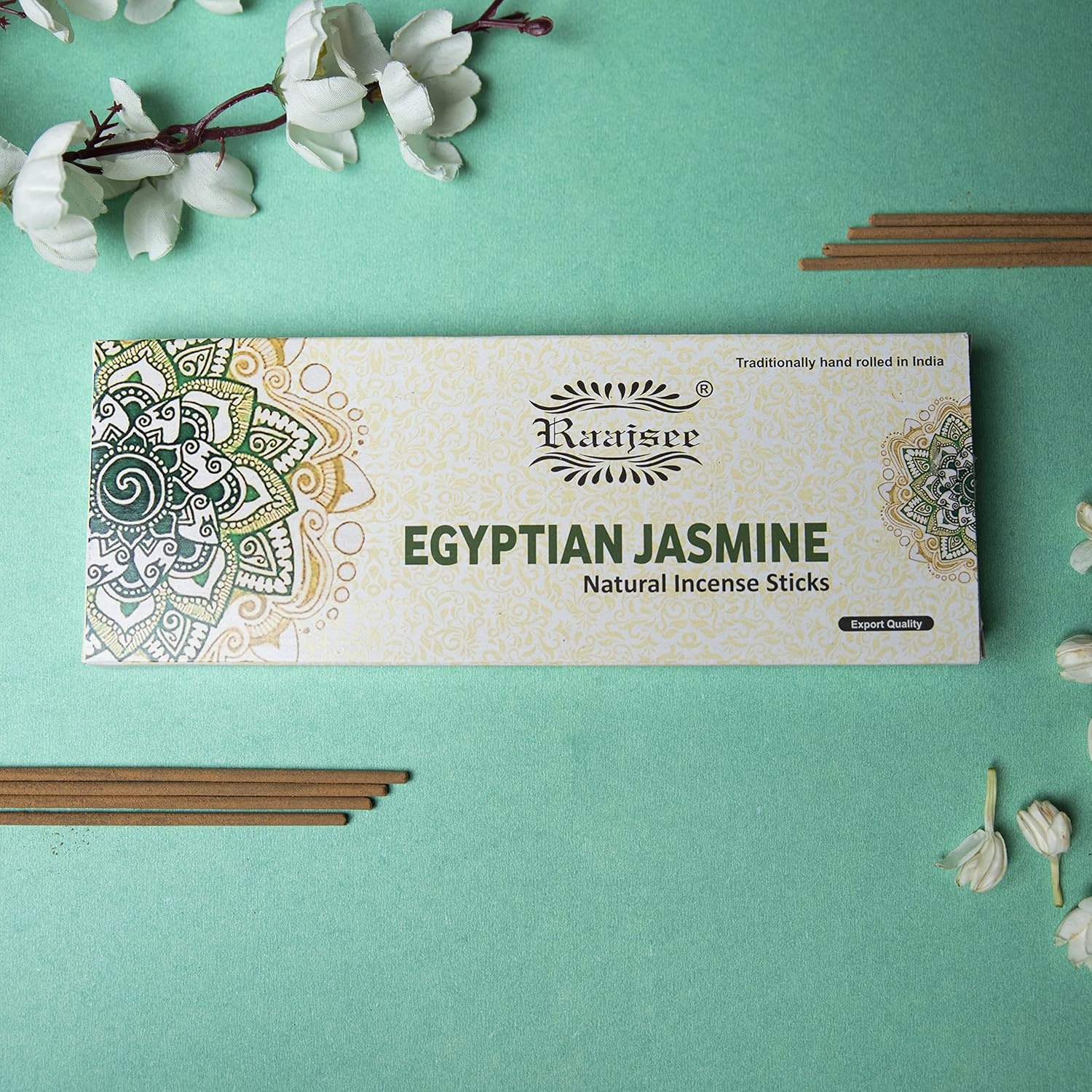 Raajsee Jasmine Flower Natural Incense Sticks 100 Gm Pack-100% Pure Organic Natural Hand Rolled Free from Chemicals-Perfect for Church,Aroma Therapy,Relaxation,Meditation,Positivity,Healing 100gm Pack