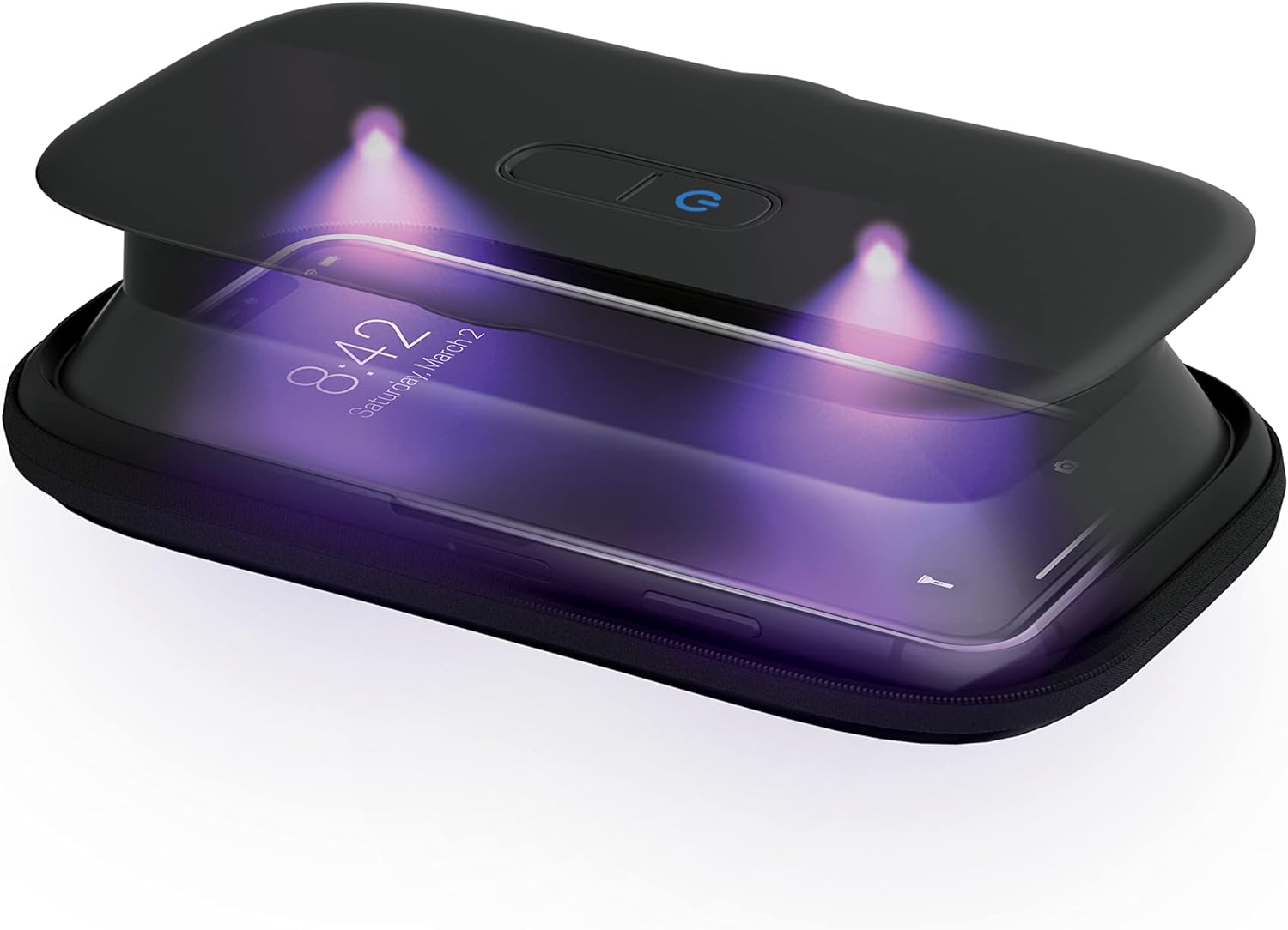 - PORTABLE PROTECTION - Keep your essential items clean and sanitized at home or on the go by utilizing patented pop-up technology and powerful UV-C LED sanitizing; after using the phone sanitizer, conveniently collapse flat to transport