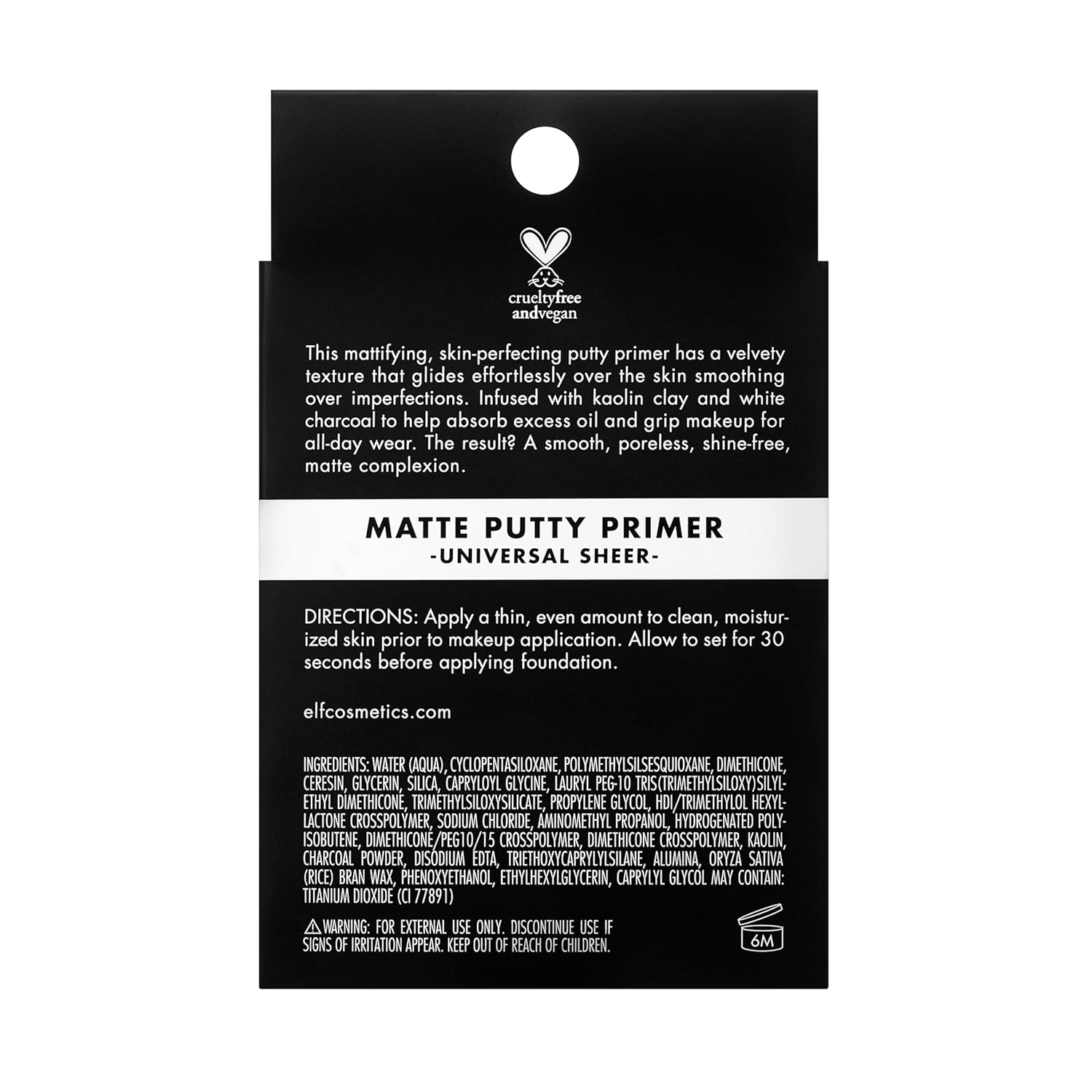 e.l.f. Matte Putty Primer, Skin Perfecting, Lightweight, Oil-free formula, Mattifies, Absorbs Excess Oil, Fills in Pores and Fine Lines, Soft, Matte Finish, All-Day Wear, 0.74 Oz