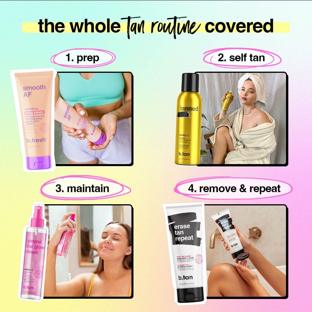 b.tan Self Tanner Bronzing Mist | Fast, 1 Hour Express Sunless Tanning Spray, No Fake Tan Smell, Dark Bronzing Glow, Face & Body, No Added Nasties, Vegan & Cruelty Free, 7 Fl Oz