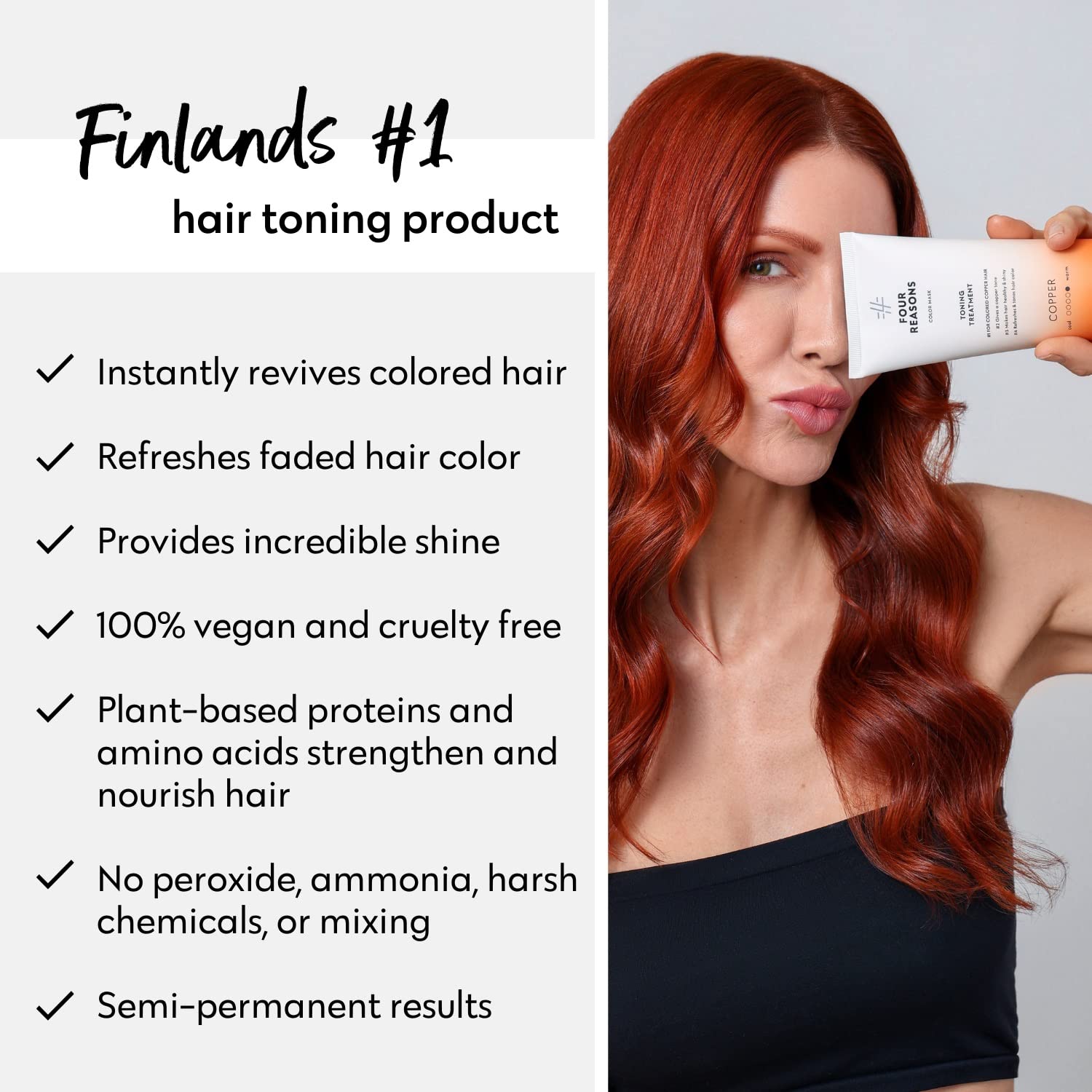 Four Reasons Color Mask - Copper - (27 Colors) Toning Treatment, Color Depositing Conditioner, Tone & Enhance Color-Treated Hair - Semi Permanent Hair Dye, Vegan and Cruelty-Free, 6.76 fl oz