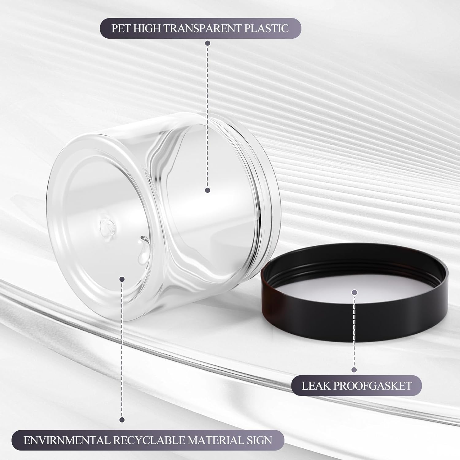 - Quality material: the 1.5 oz plastic jars with lids are made of quality clear plastic, without odd smell, does not contaminate your skincare products, stable, high temperature resistance, a black plastic cover with lid, sealed storage and leak proof