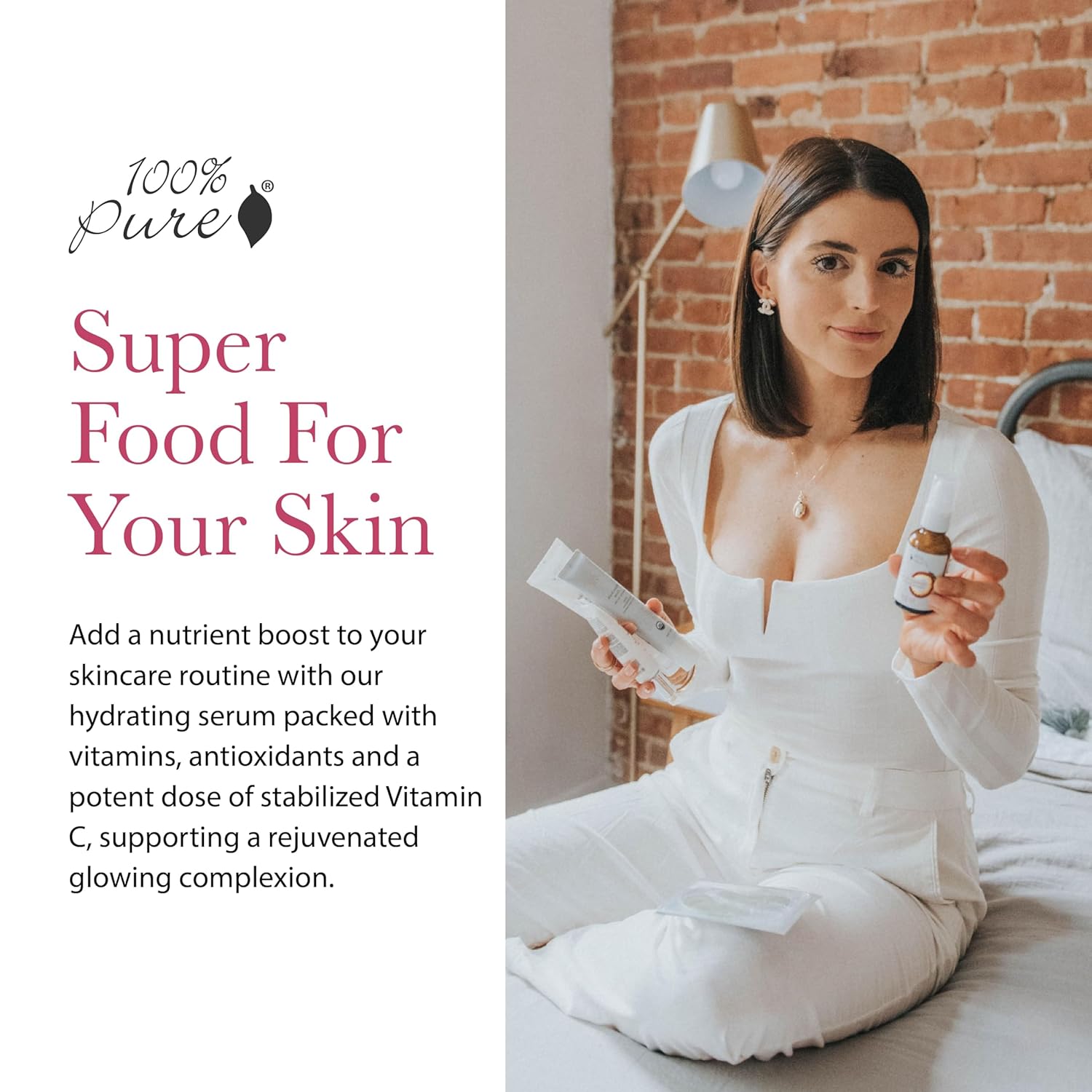 - SUPER FOOD FOR YOUR SKIN - Add a nutrient boost to your skincare routine with our hydrating serum packed with green vitamins, antioxidants and a potent dose of stabilized Vit C, supporting a rejuvenated glowing complexion.