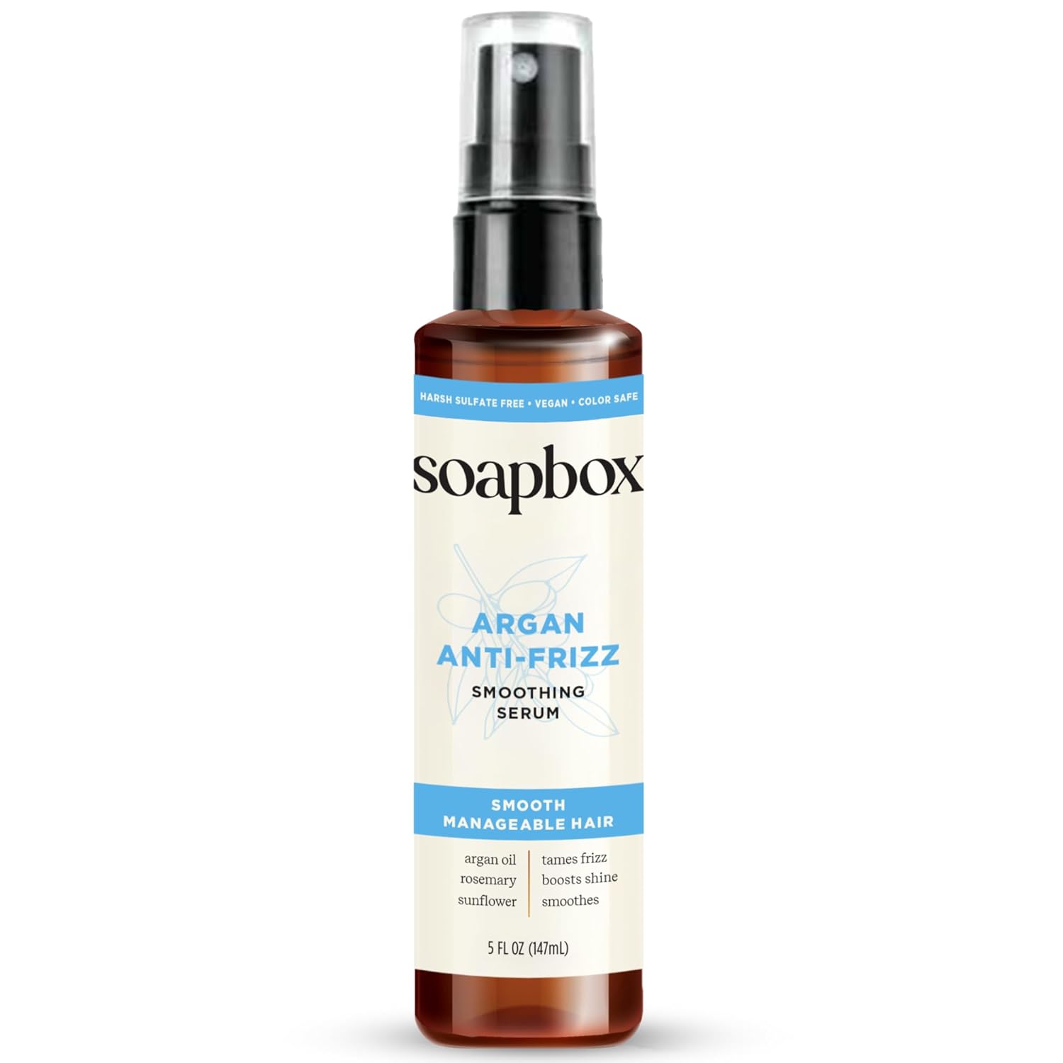 Soapbox Argan Oil Smoothing Serum, Anti-Frizz Serum For All Hair Types with Shea Butter & Vitamin E Repairs Damage & Controls Flyaways - Vegan, Cruelty and Gluten Free (5 Fl oz)