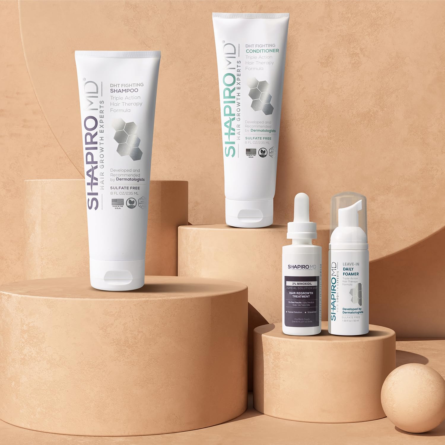 Shapiro MD Hair Growth Experts Men's Regrowth Kit Plus: Shampoo, Conditioner, 5% Minoxidil, Leave-In Foam, Complete Anti Hair Loss and Thinning Hair Solution for Men, 1 Month Supply