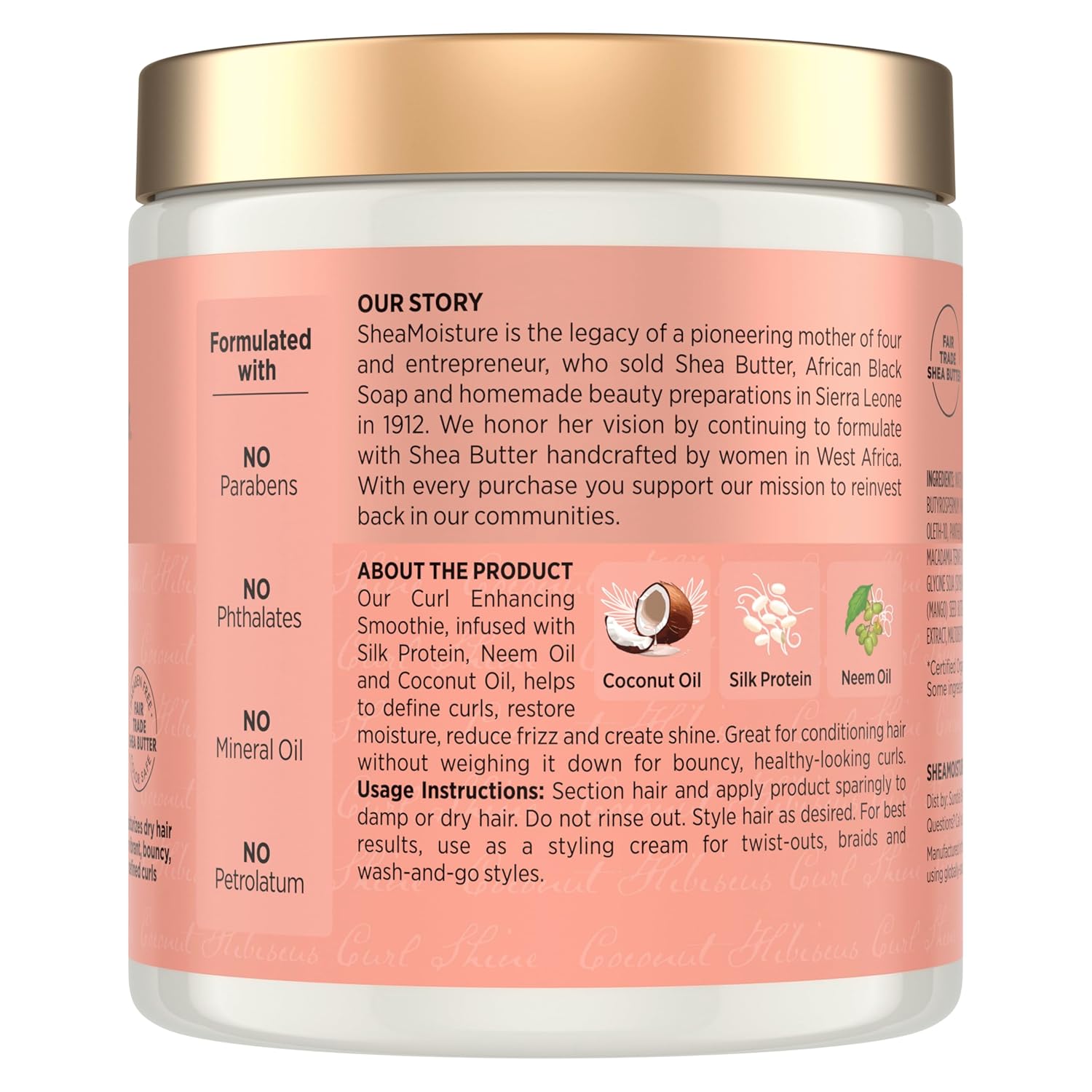 SheaMoisture Curl Enhancing Smoothie Hair Cream Coconut and Hibiscus for Thick, Curly Hair Sulfate Free and Paraben Free Curl Cream 20 oz