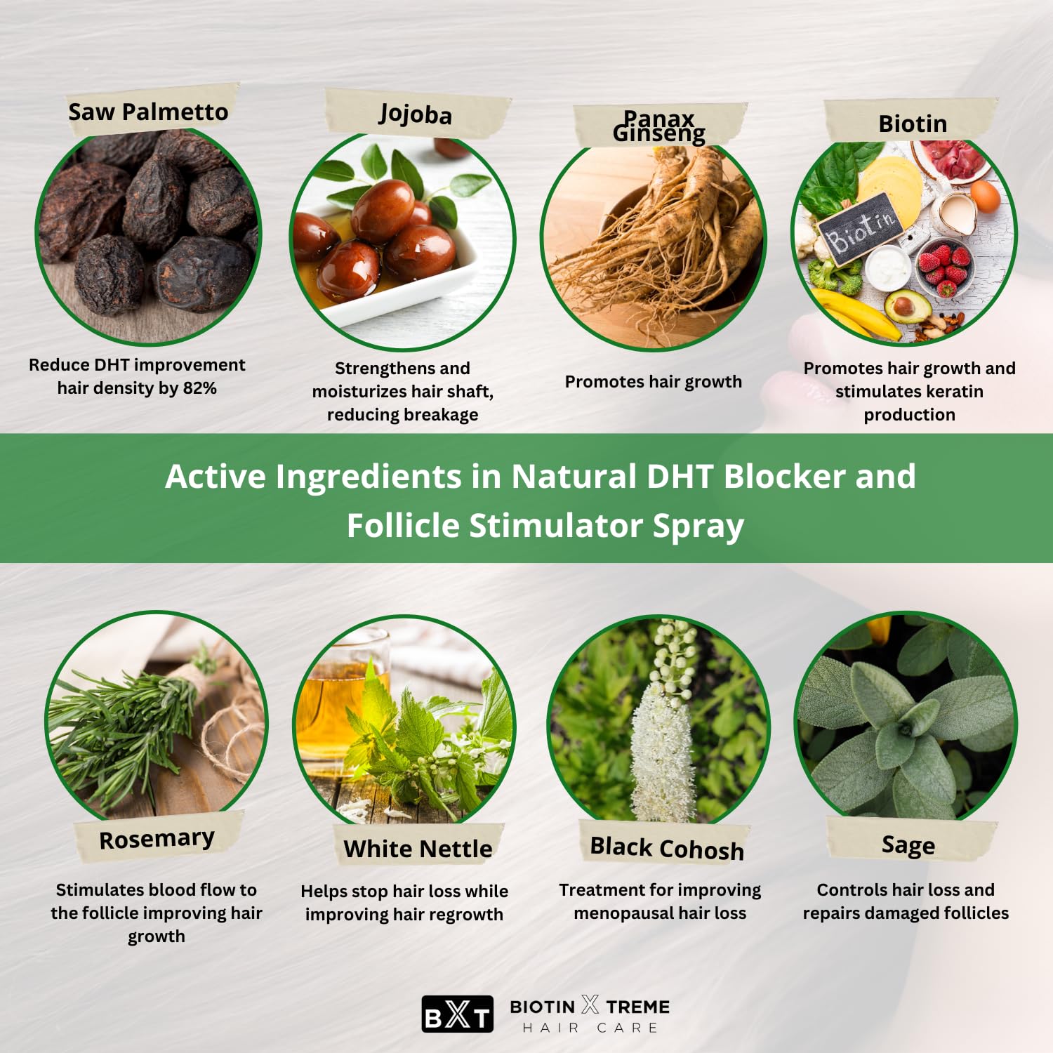 - Natural DHT Blocker: Our Biotin Hair Restoration Spray for men and women is a drug-free solution designed to naturally block DHT, a key contributor to hair thinning and loss, using effective and natural ingredients.
