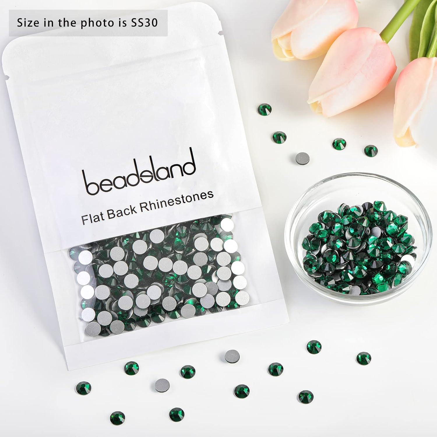 beadsland Flat Back Crystal Rhinestones Round Gems, Emerald (6.4-6.6mm) SS30/288pcs