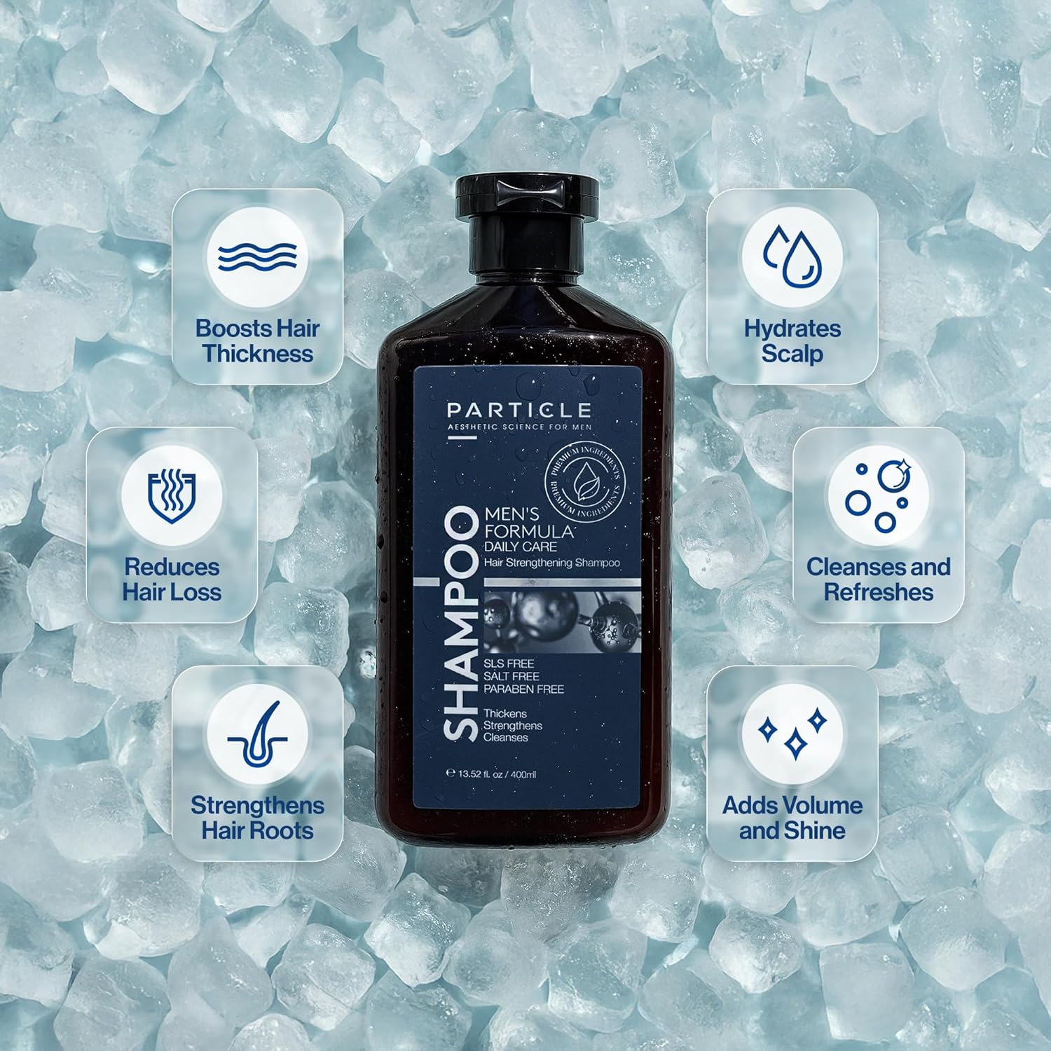 - Hair Shampoo For Men: Particle Hair Thickening Shampoo is designed to support fuller-looking, healthier-feeling hair while cleansing and refreshing the scalp. Tailored specifically for men, this shampoo delivers a revitalizing wash that enhances daily grooming routines with a clean and confident finish.