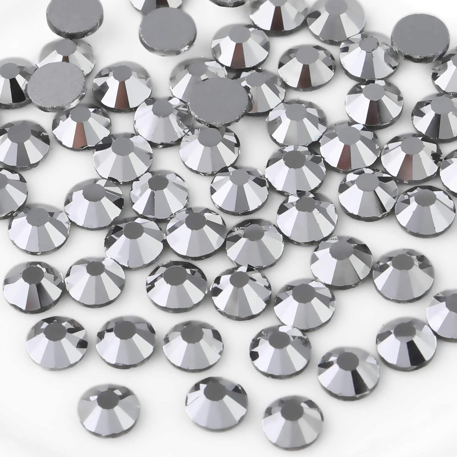 beadsland Flat Back Crystal Rhinestones Round Gems for Nail Art and Craft Glue Fix, Silver Hematite (2.3-2.5mm) SS8/1440pcs