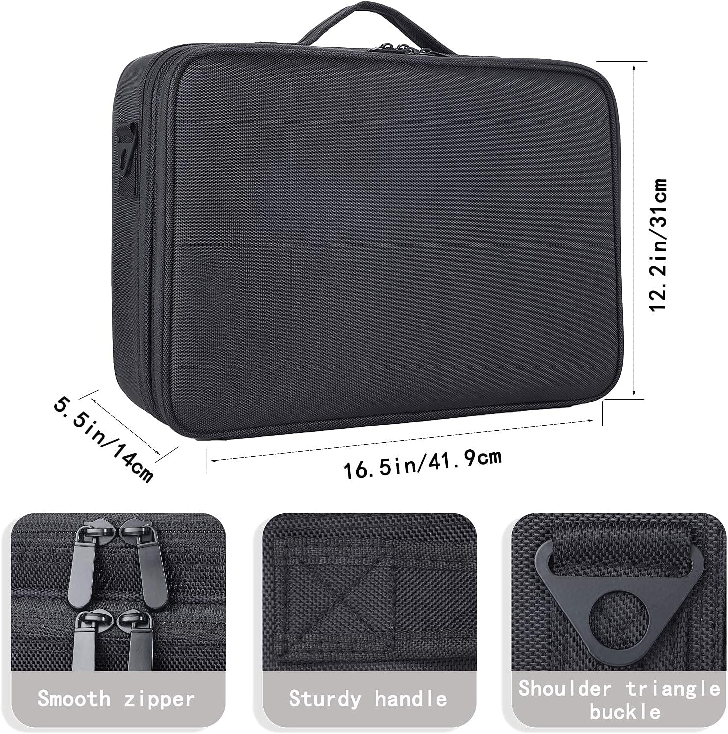 - Large Capacity:JOURMON large makeup bag is designed in 3-layers (40Ă—29Ă—12 cm / 16.5Ă—12.2Ă—5.5 inches). This makeup travel case has enough space to store your cosmetic accessories, like lipstick, nail polish, makeup brushes, eyeshadow palette, etc.