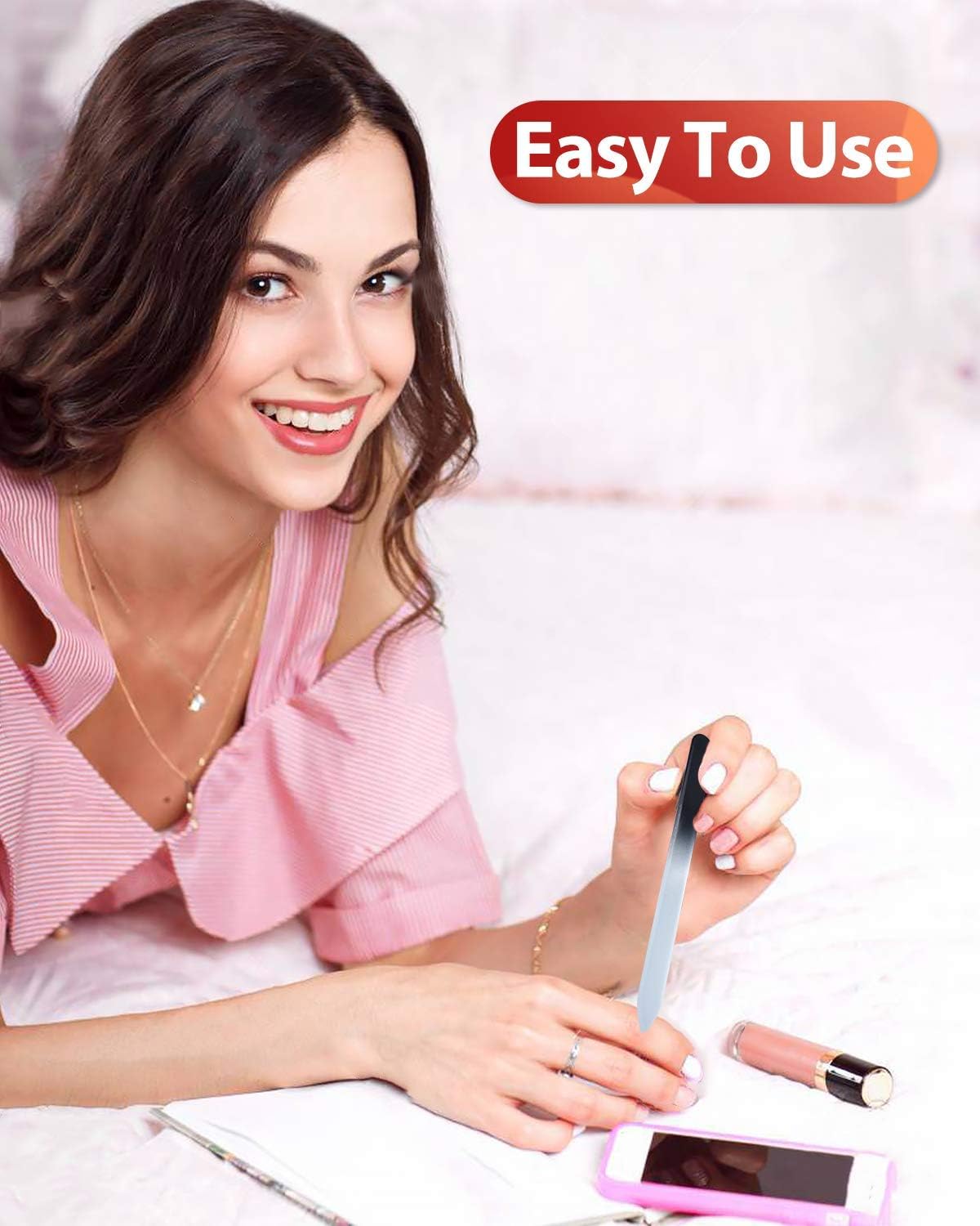 - 【Durable & Effective】: Made of high quality tempered glass, the abrasive filing surface is gentle and effective and never wears out or becomes blunt. Unlike other ordinary nail buffers and files, our glass nail files are gentle on the nails and cuticles, expertly shape nails with comfort, easy & efficiency.