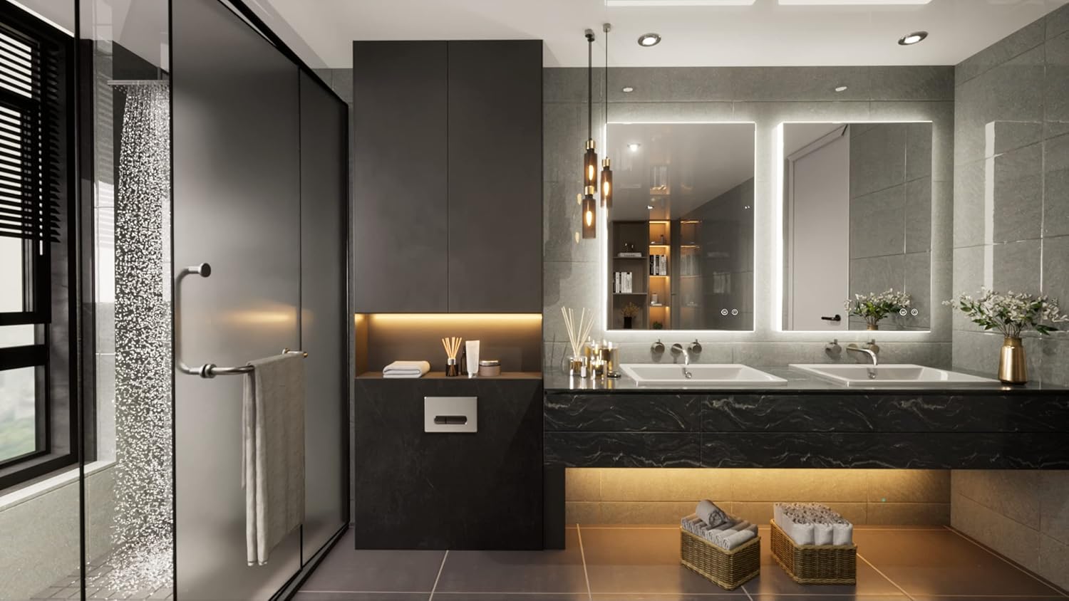 - ✨【Anti-Fog】-The anti-fog can be separately control.Turn on before bath always kept the fog away.