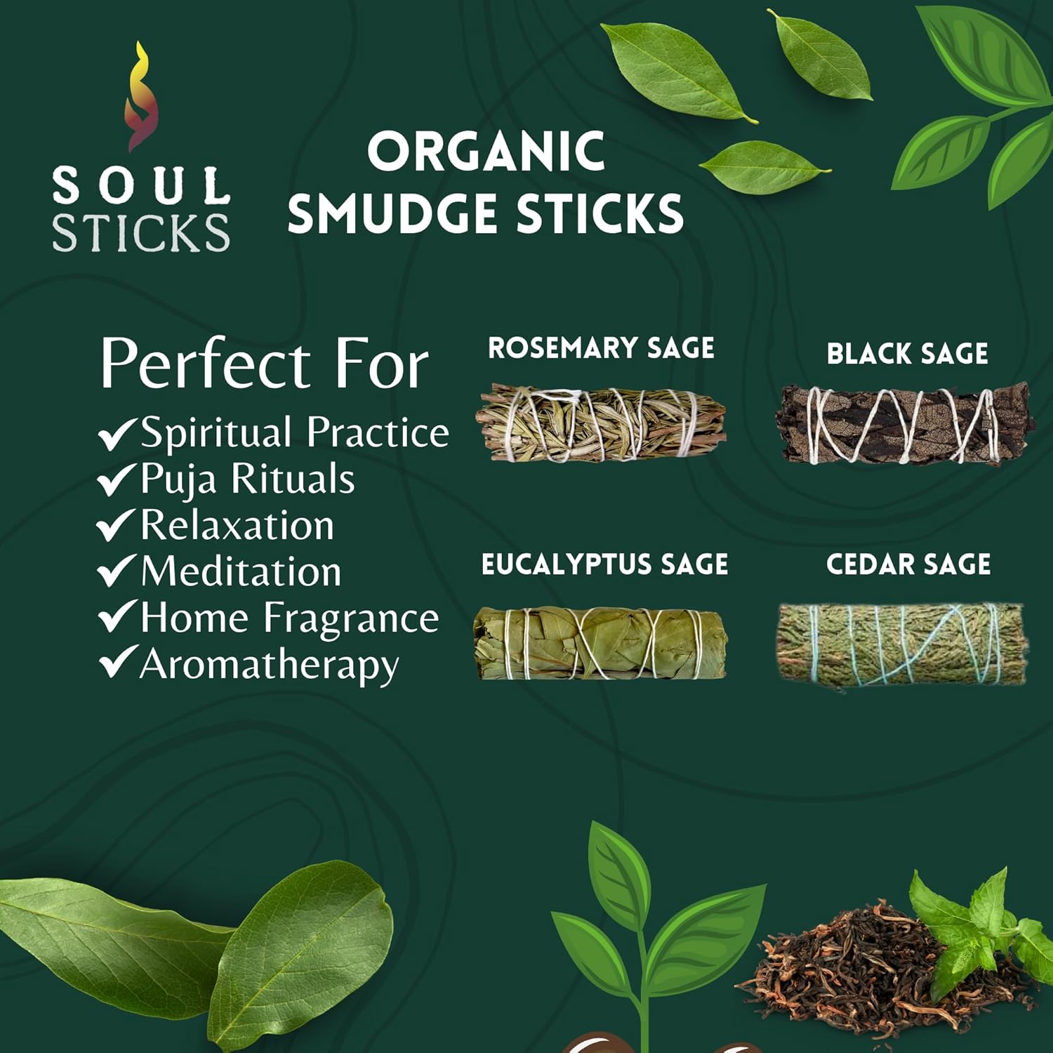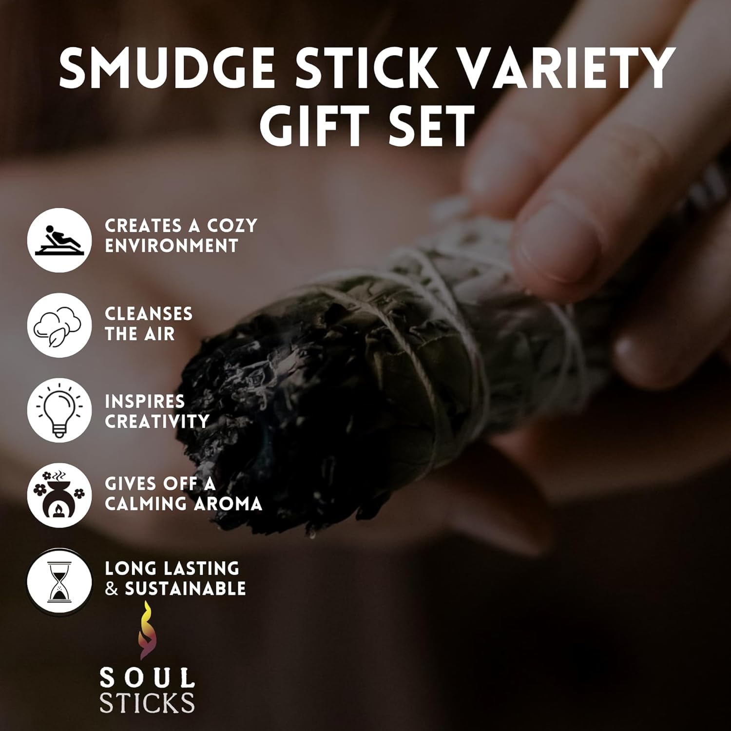 SOUL STICKS Smudge Stick Variety Gift Set | Bulk Sage Bundles for Space Cleansing | Smudging Wand Gift Set with Smudge Guide (Essential Sage, 6 Pack)