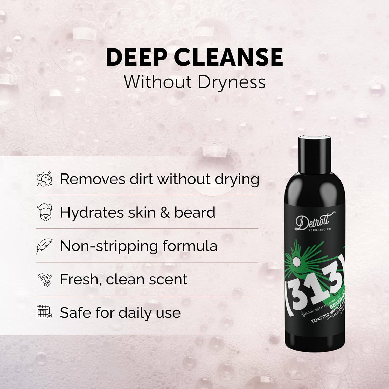 Detroit Grooming Co. Beard Wash - Men's Beard Shampoo - Deeply Cleanses & Refreshes Beards - Aloe Vera with Essential Oils - Beard & Mustache Cleanser - Toasted Vanilla & Amber Scent - 313-8oz