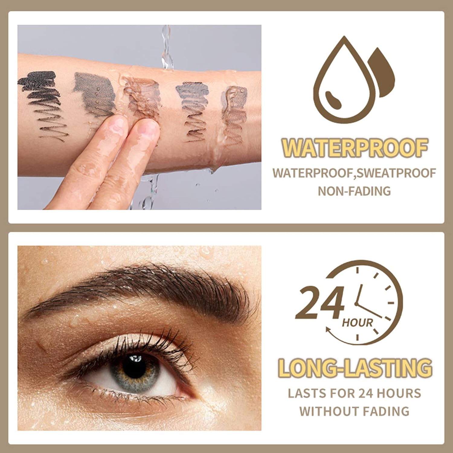 - 【WATERPROOF】The eyebrow makeup gel is waterproof which provide strong resistance against water, sweat and oil. You don’t need to worry about color smudging or fading when you are sweating, swimming or taking a shower.