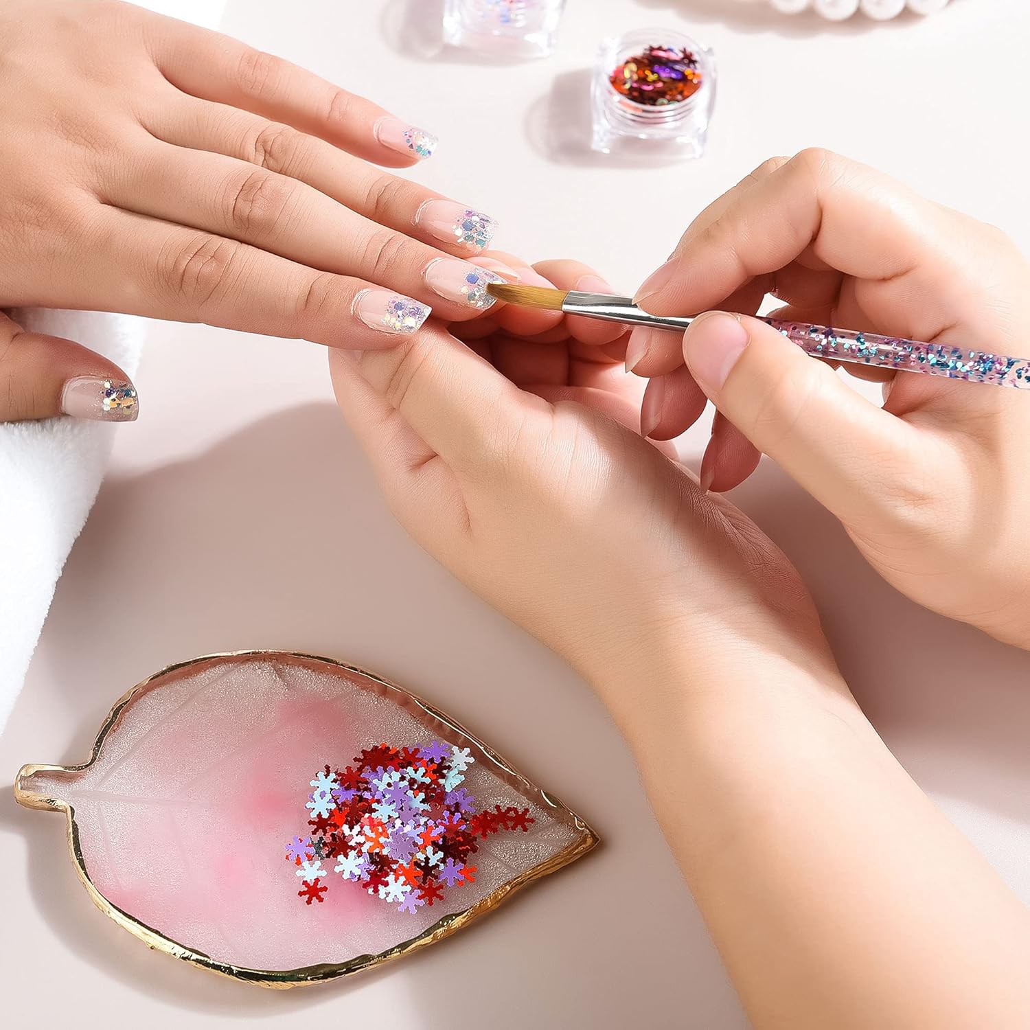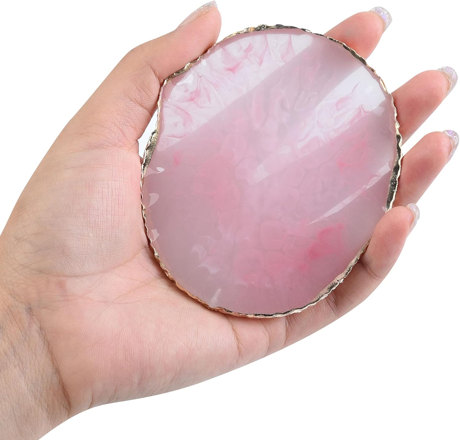 - Package includes: you will get 2 pieces pink resin nail art palettes with leaf and round shape, suitable to hold many colors and pigments you want to mix, enough to meet your basic using needs.