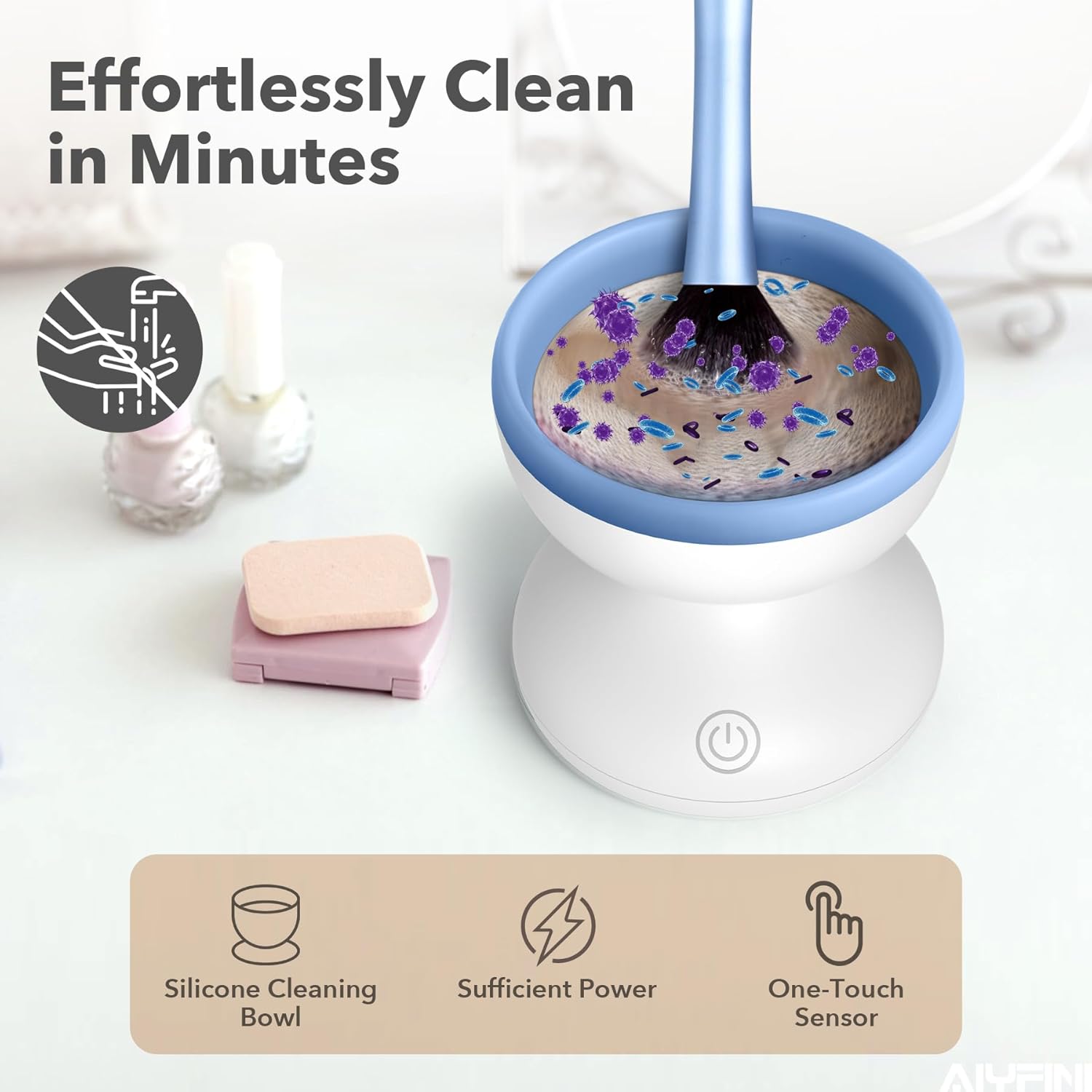 - Enjoy a Leisurely Cleaning: The Alyfini Electric Makeup Brush Cleaner Machine is designed to provide you with an effortless and stress-free cleaning experience. Say goodbye to sore hands and backaches after spending hours cleaning your makeup brushes at the sink