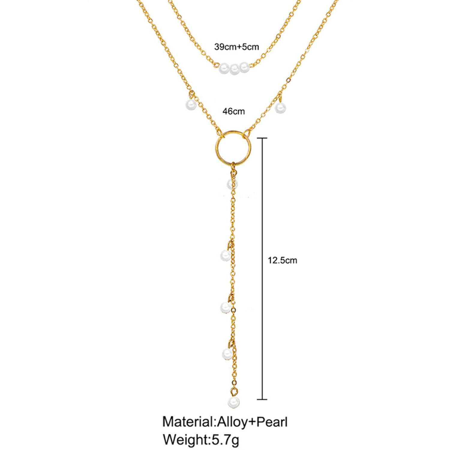 Boho Circle Pearl Lariat Necklace Gold Long Lariat Chain Necklace Tiny Pearl Choker Necklace Drop Pearl Chain Y Necklace Jewelry for Women and Girls Gifts