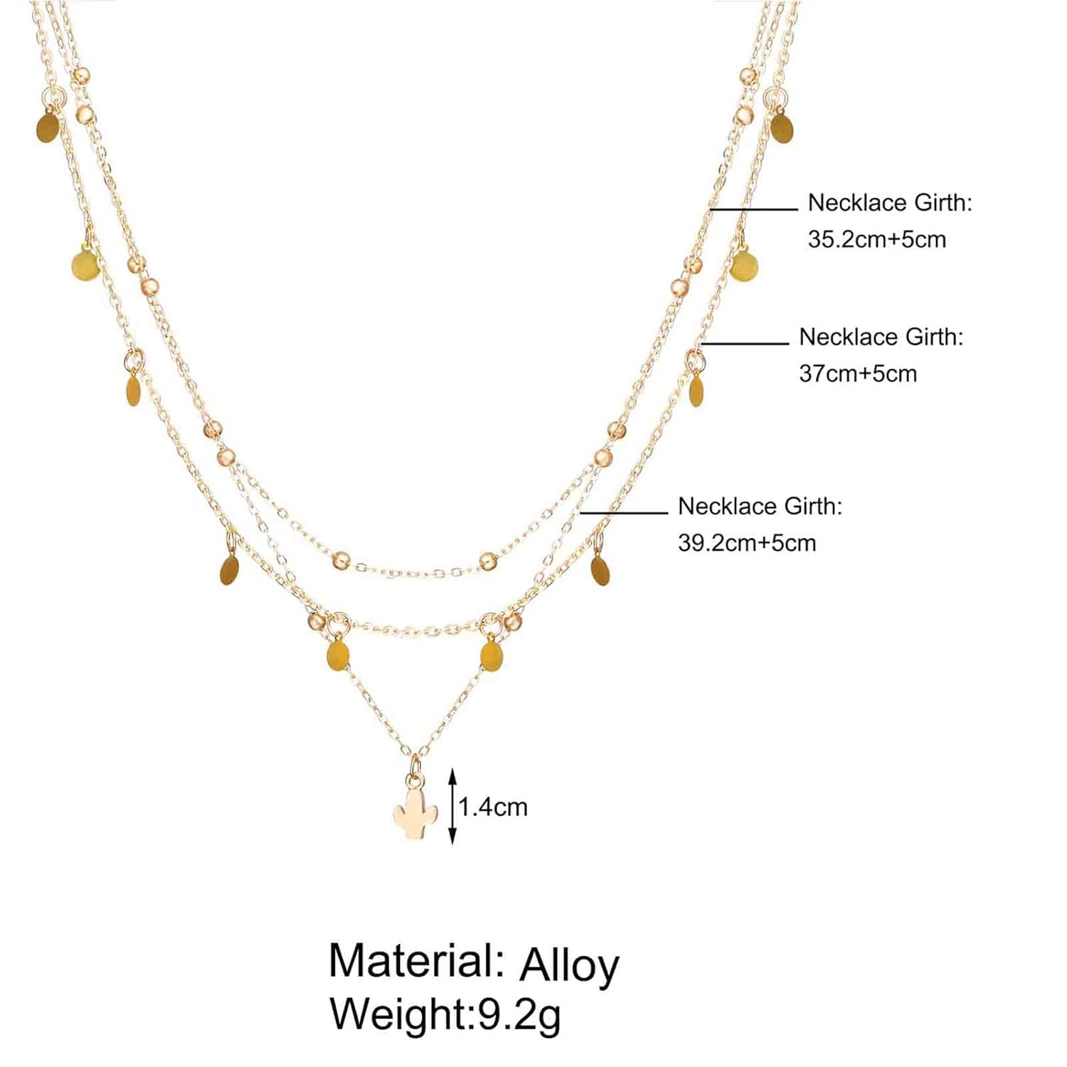 Boho Layered Disc Coin Necklace Choker Gold Cactus Pendant Necklace Stacking Satellite Chain Necklace Vintage Multilayer Necklace Chain Jewelry for Women and Girls Gifts