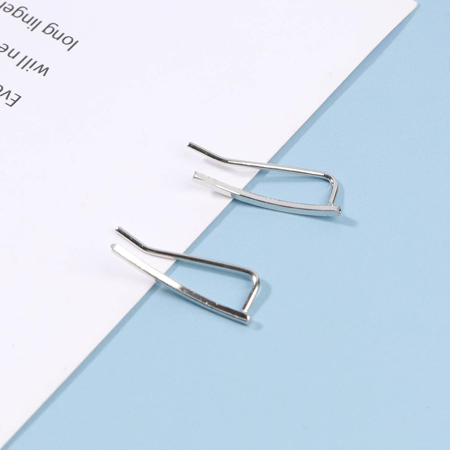 - Silver Curved Bar Earrings Studs with real images.Length around 0.7inch.2Pcs.