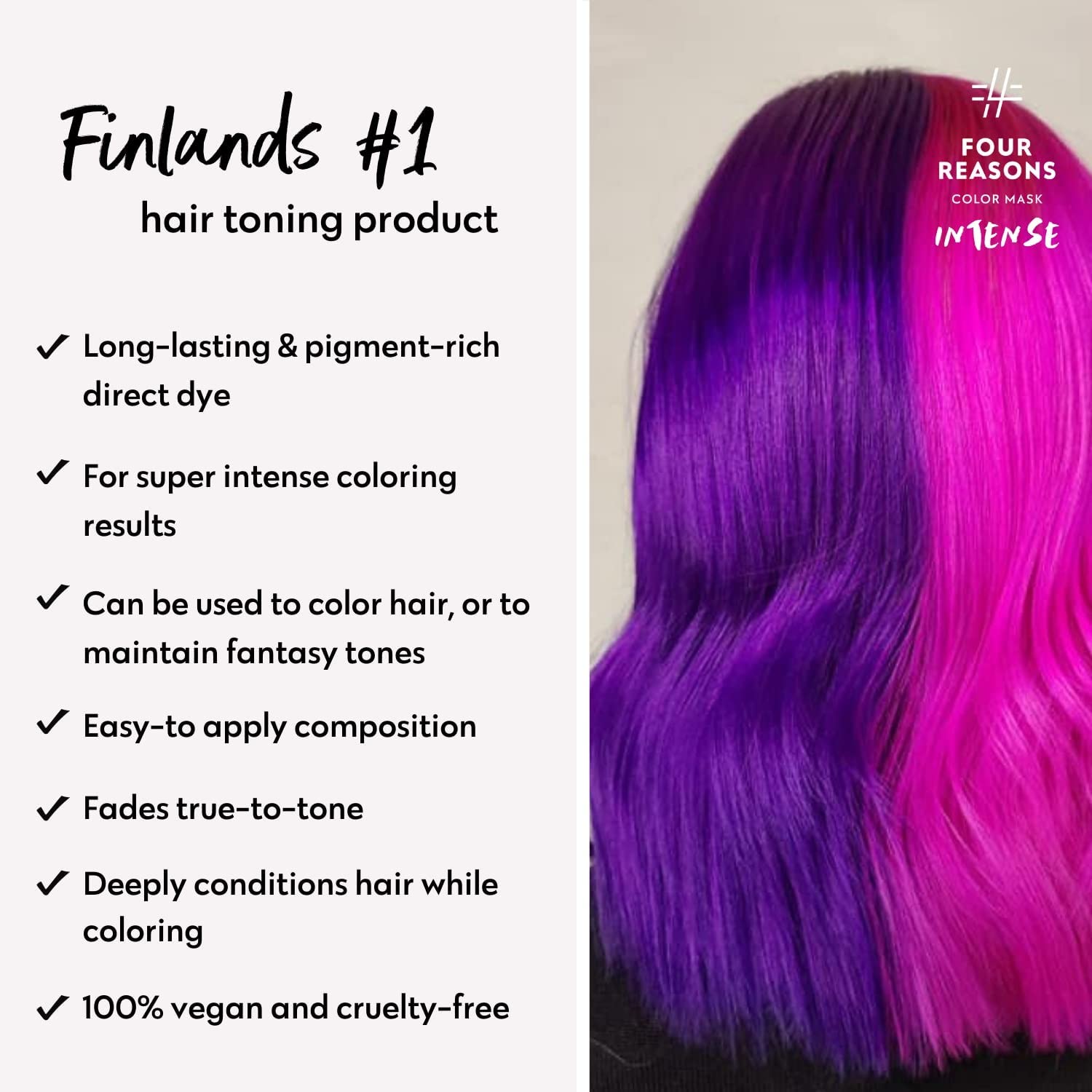 Four Reasons Color Mask INTENSE- Violet – (27 Colors) Intensive Toning Treatment - Color Depositing Conditioner – Semi Permanent Hair Dye for Lightened and Colored Hair– 100% Vegan, 6.76 fl oz