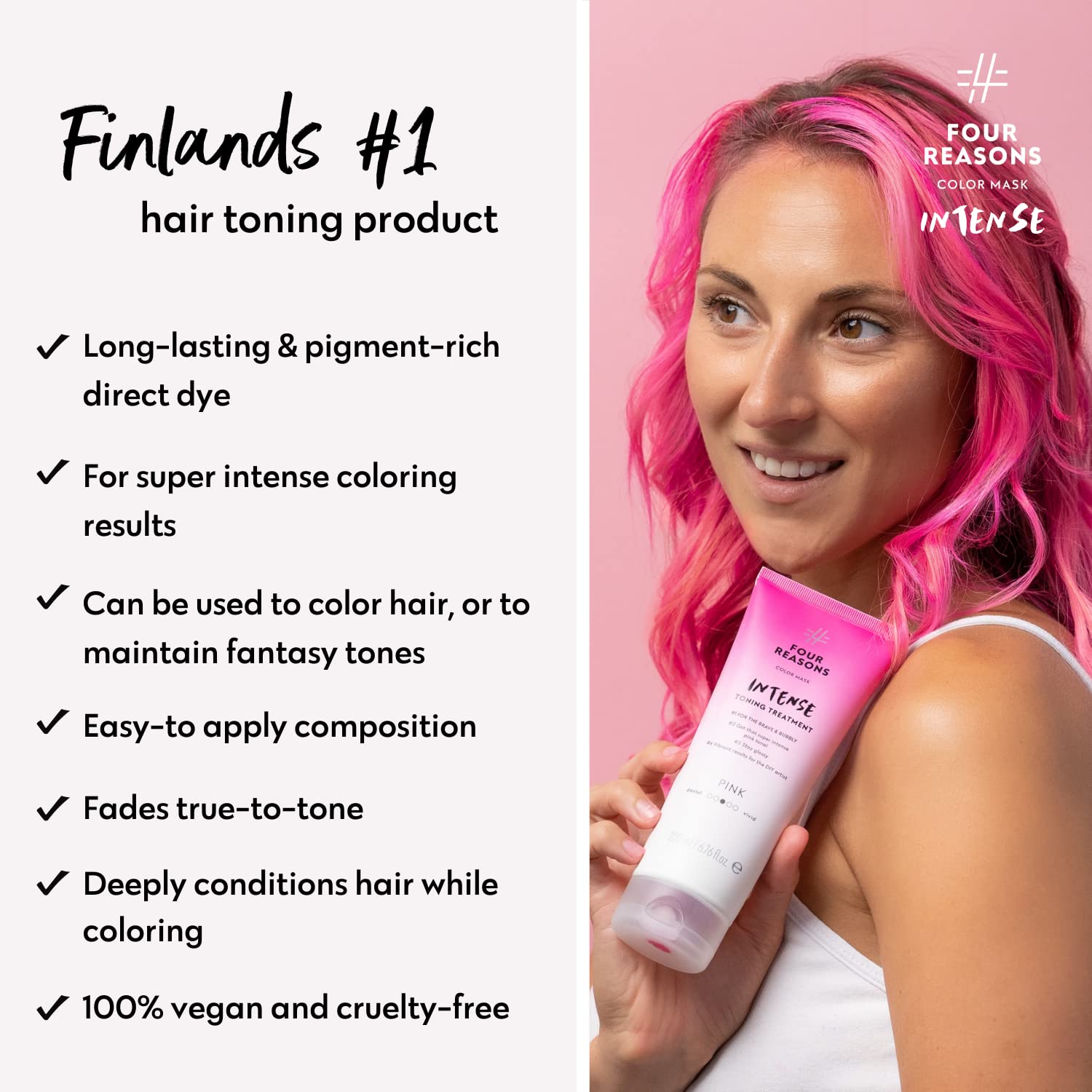 Four Reasons Color Mask INTENSE - Pink – (27 Colors) Intensive Toning Treatment - Color Depositing Conditioner – Semi Permanent Hair Dye for Lightened and Colored Hair– 100% Vegan, 6.76 fl oz