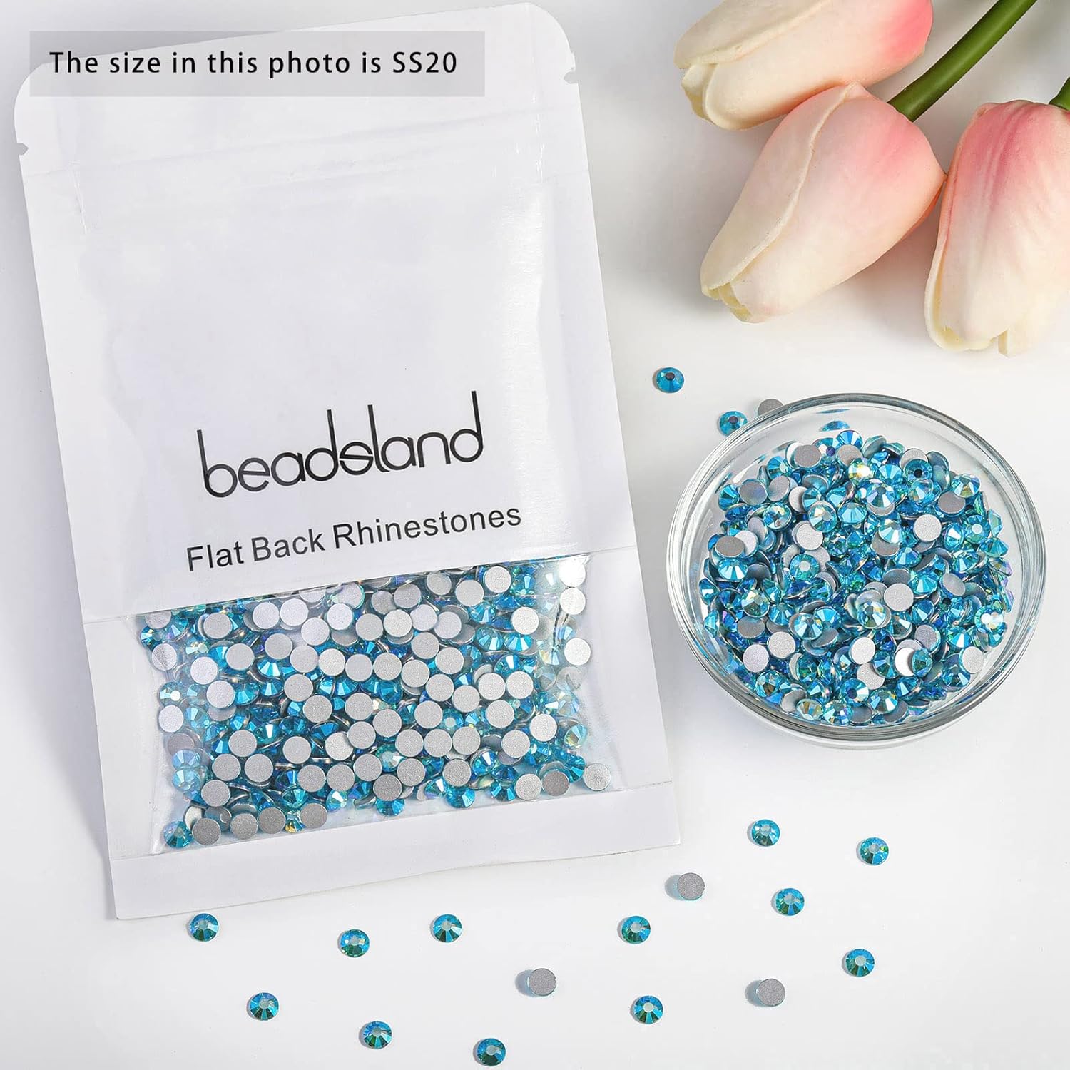 - Pack of 1440 Pieces light Blue AB Rhinestones SS20,Size 4.6-4.8mm.