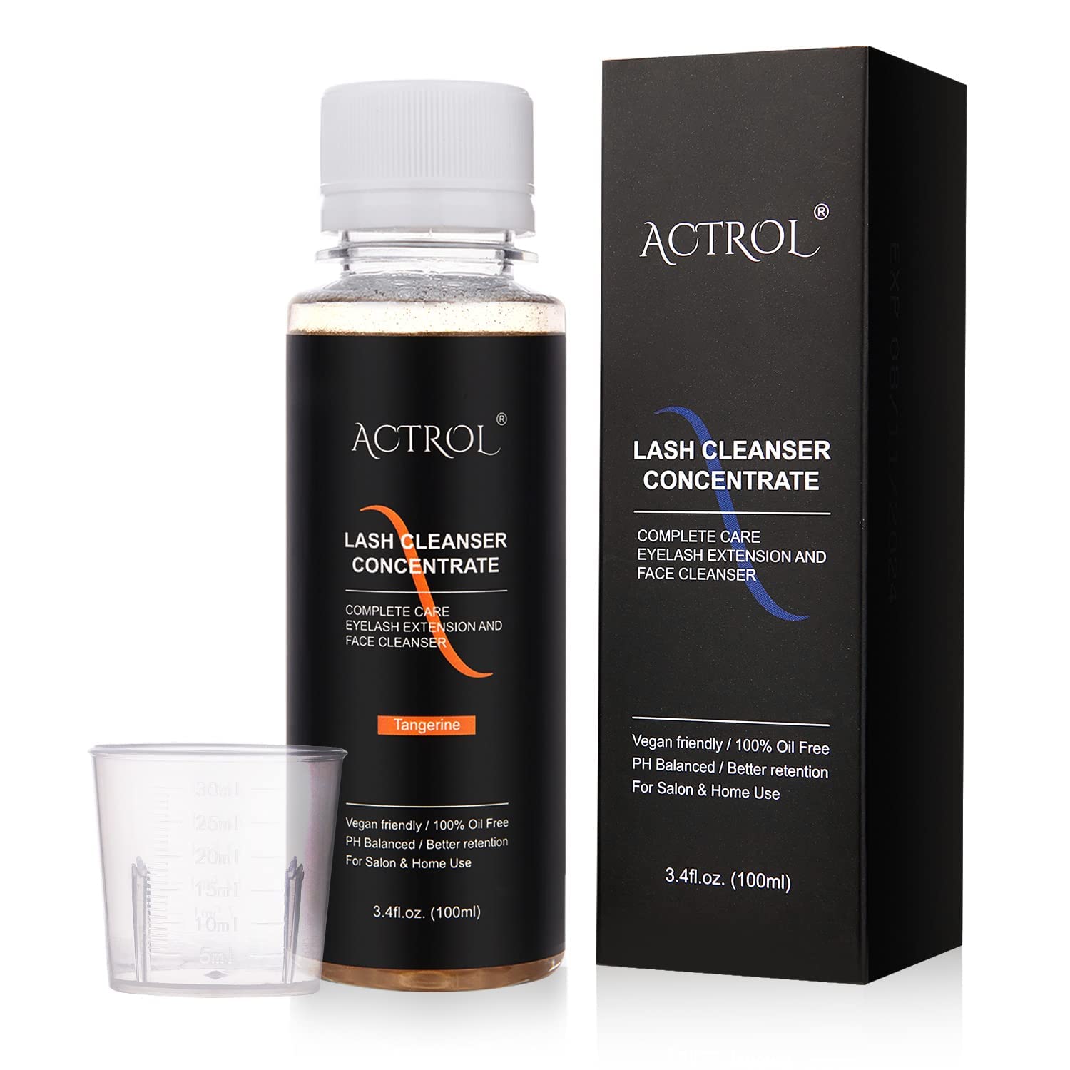 Eyelash Cleanser Concentrate 100ml Tangerine Professional Lash Shampoo Foaming Cleanser Paraben & Sulfate Free Non-lrritating Wash for Extensions Lashes with Salon Home Care-Makes 20 Bottles