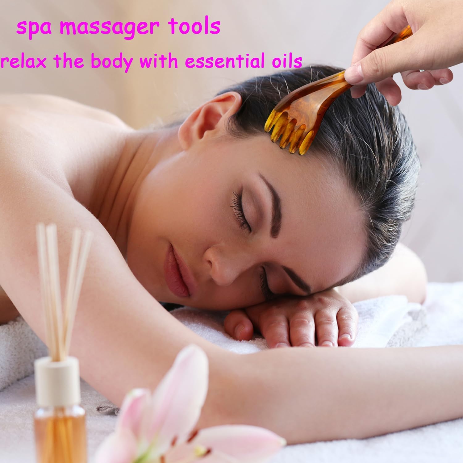 Scalp Massage Tools, 2-Pieces Head Scratcher Massager Whisk, Gift for Mother, Sister,Kids and Lover, Portable Resin SPA Tools with a Black Zippered Bag(Amber)