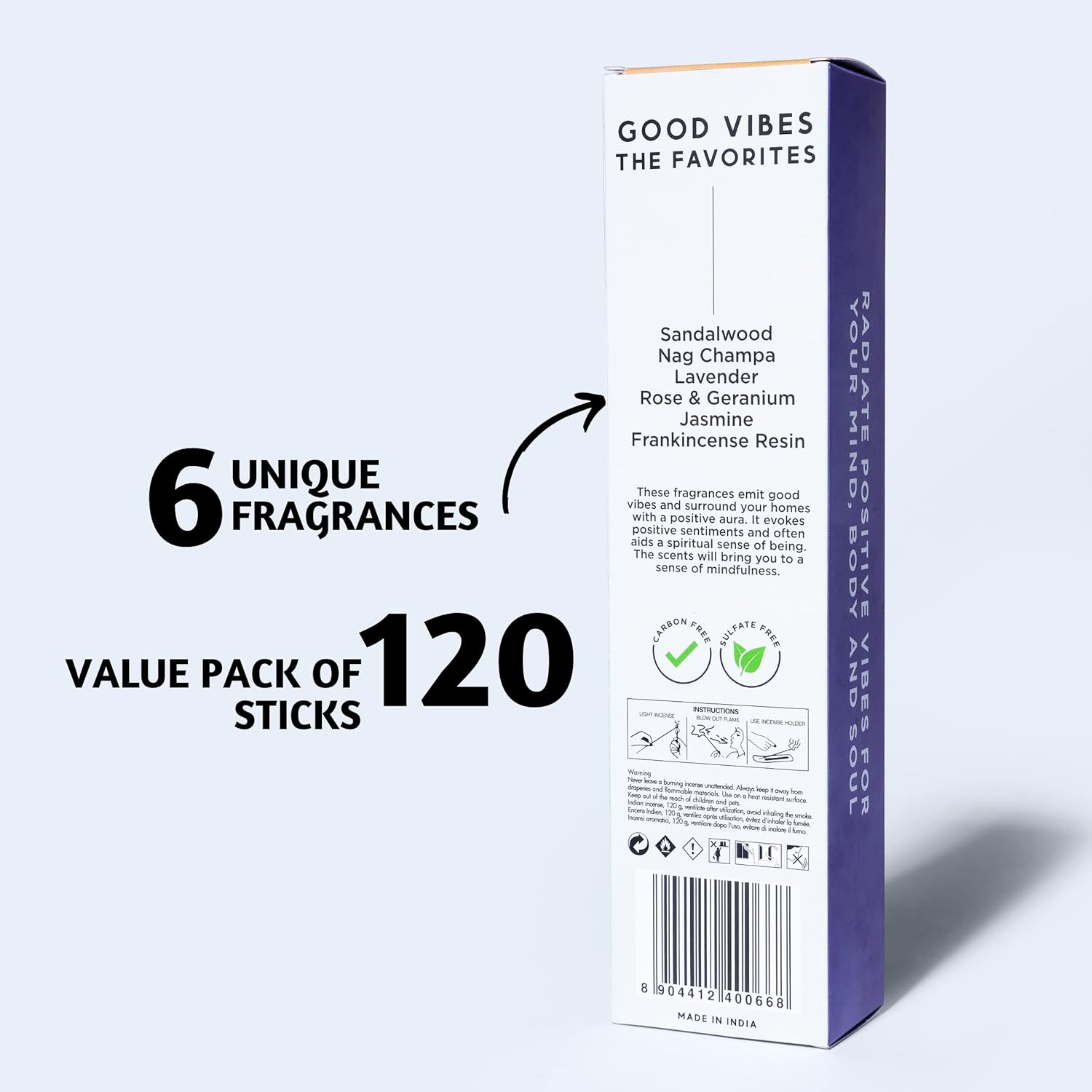 - Long-Lasting Value Pack – Each stick burns for up to 45 minutes, delivering hours of soothing fragrance. This insents set includes 120 incense sticks, and do not emit black smoke.